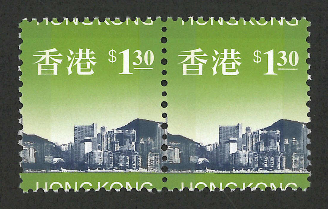 1966-1997 Hong Kong QEII 2nd series 10c in block of 4 and Skyline $1.3 in pair, both with distinct perforation variety. Both MNH.