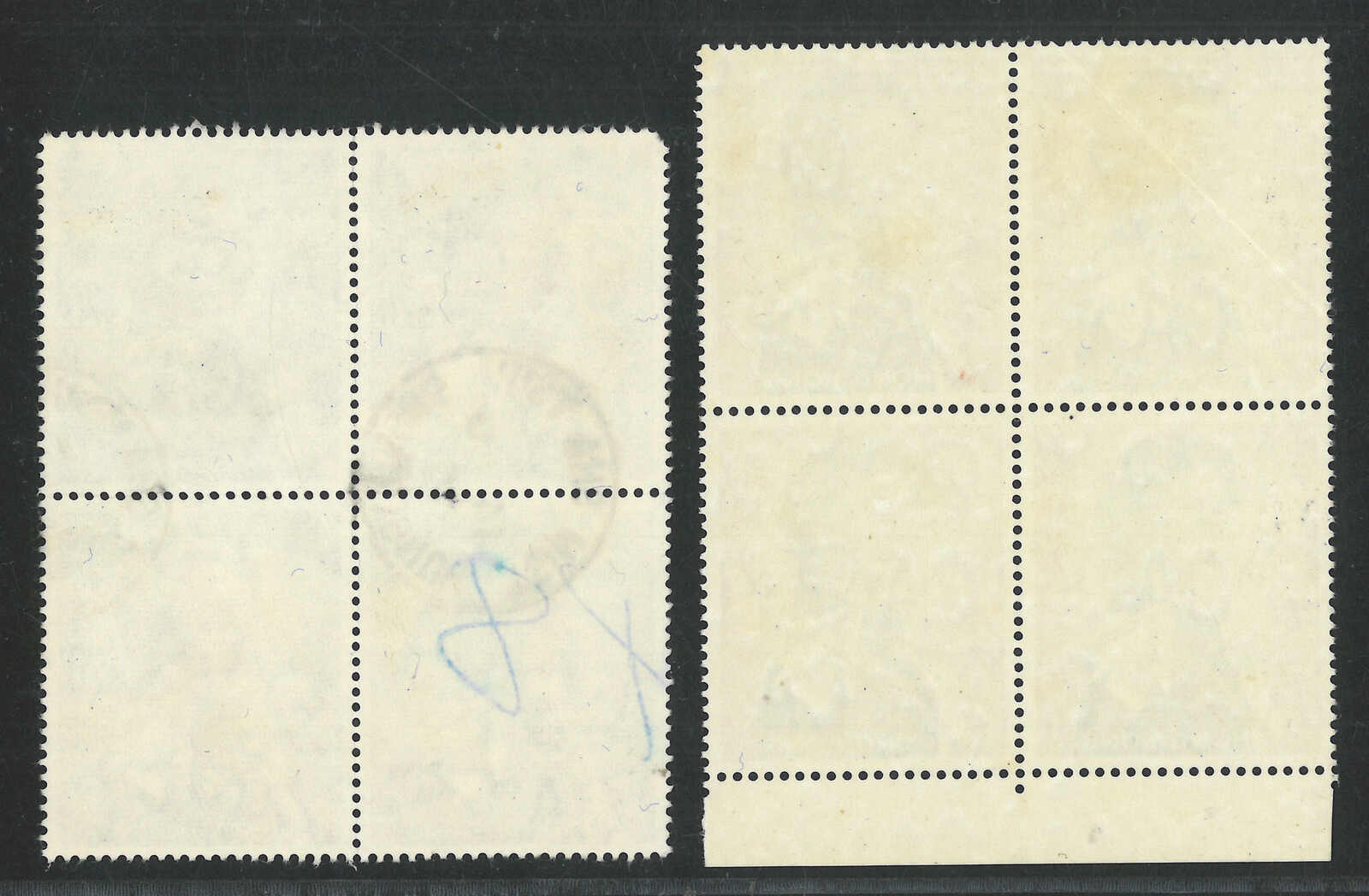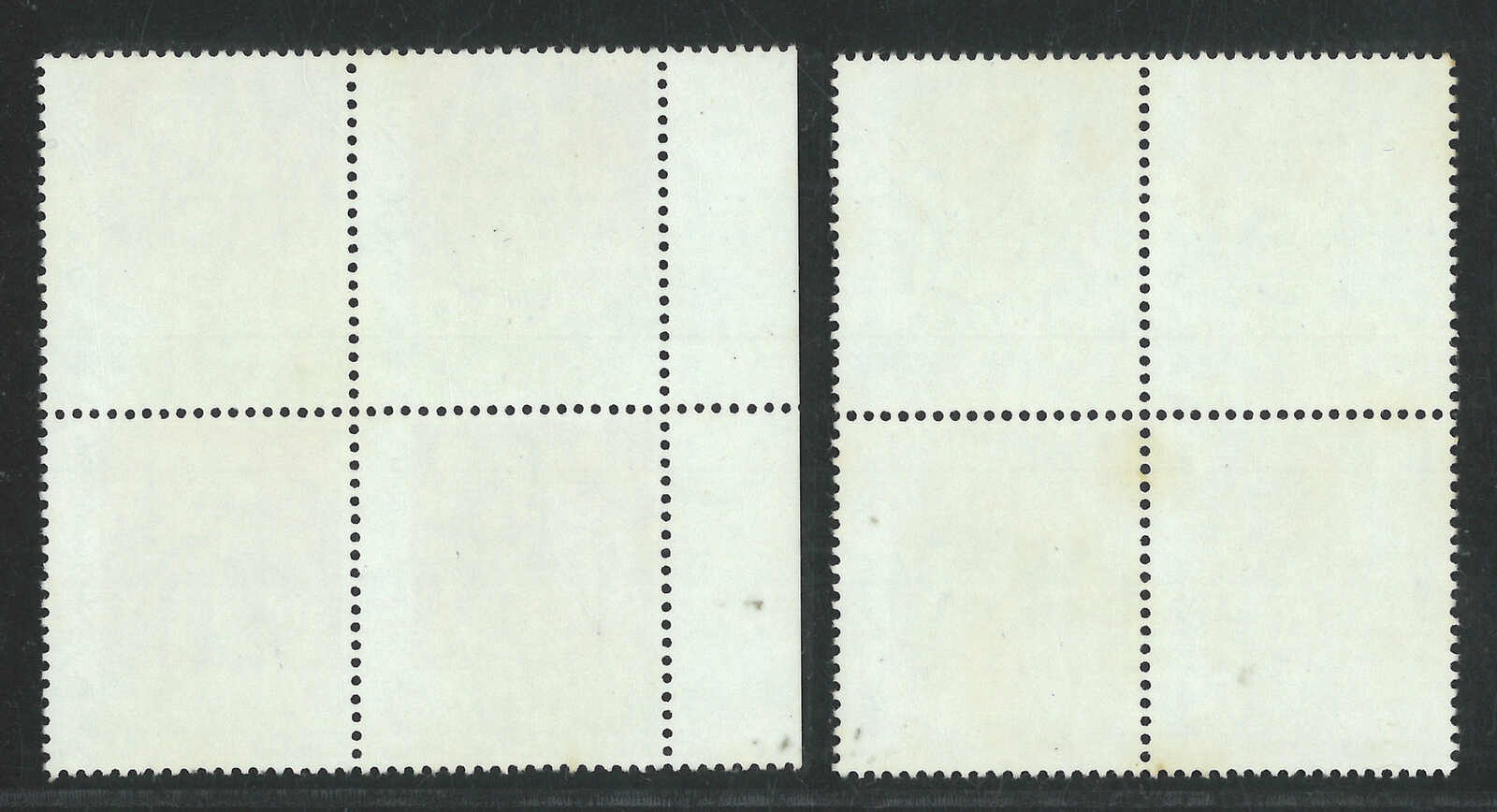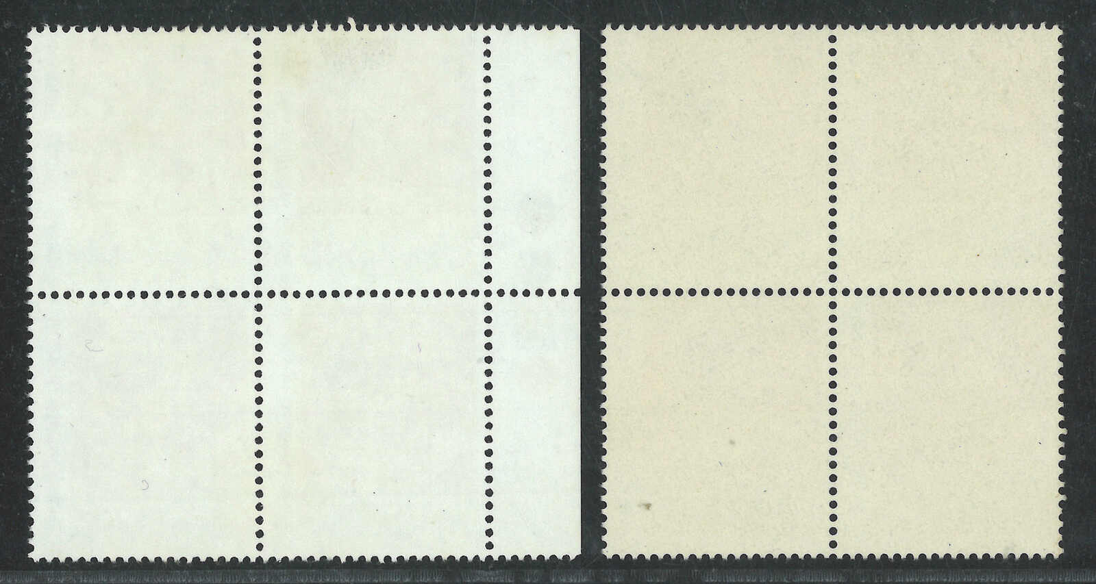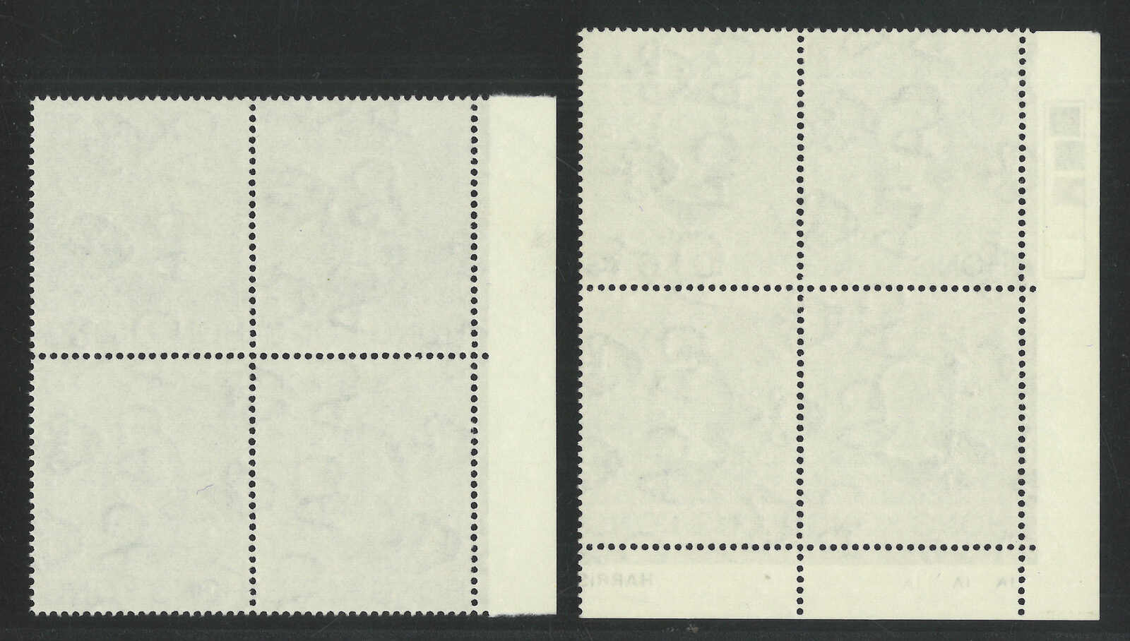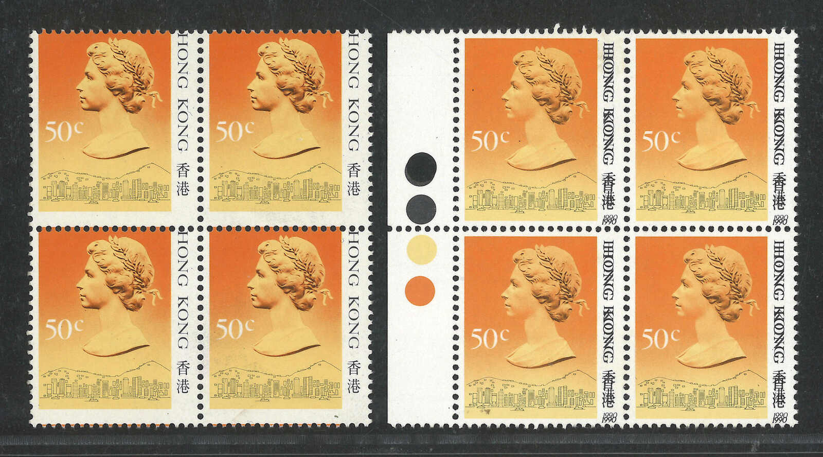 1966至1997年香港伊麗沙白二世第二組1角四方連及香港海傍1元3角橫雙連,均帶明顯齒孔變異。均原膠無貼。(Image 1)