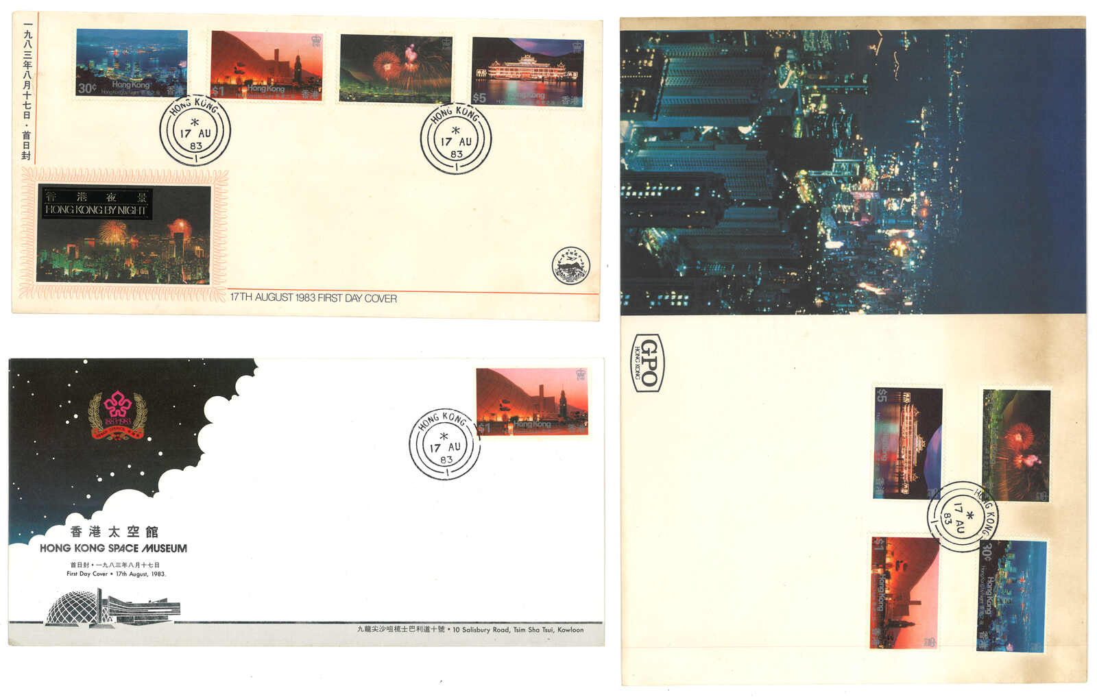 1983 (17 Aug) Hong Kong by Night FDC in a group of 3 (Yang C183-185), including scarce HK Night large cover which was given to guests only while other two are HK Space Musem and HK by Night (small) cover.