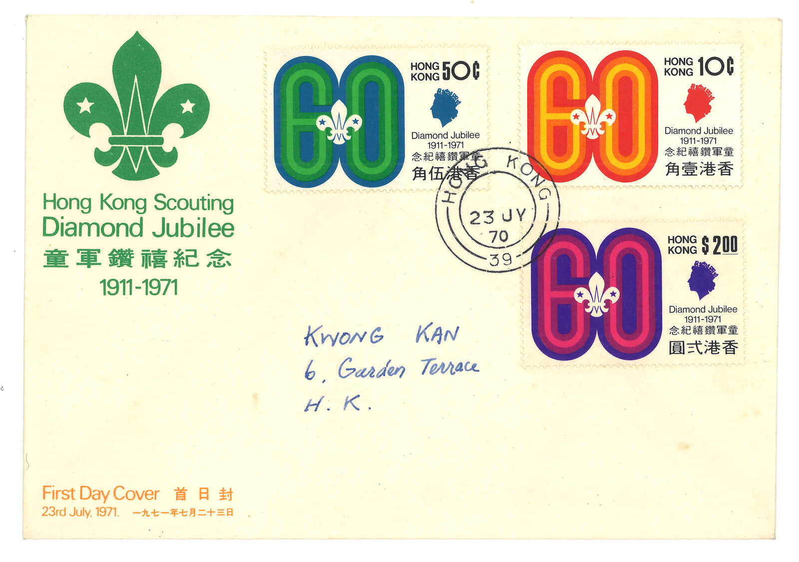 香港夜景首日封一組三件(楊目C183-185),當中一件為少見之夜景大封,當時僅贈予嘉賓。另兩件為太空館及夜景(正常尺寸)封。(Image 1)