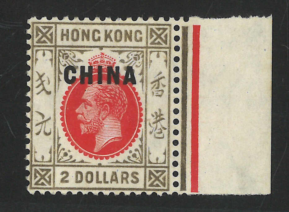 2345 */bof image1917-1927 Hong Kong KGV ovpt. CHINA issues single and multiples in a group of 5, denominations from 2c to $2, showcasing features such as plate number, broken "KONG" variety. All mint.