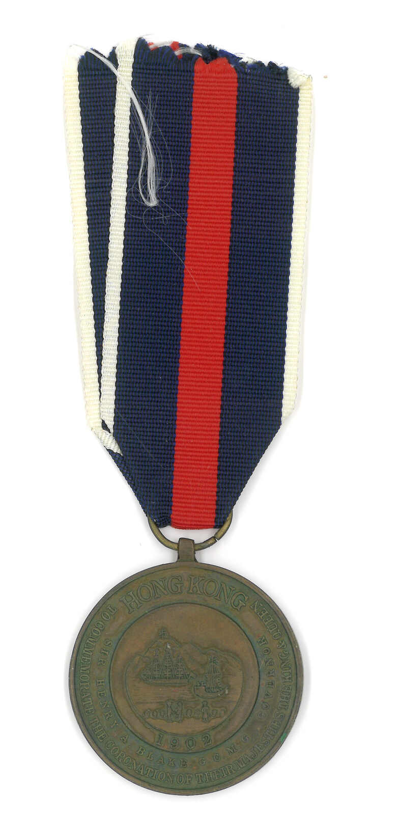 1516 image1902 Hong Kong King Edward VII and Queen Alexandra Coronation Medal (diameter 37mm), with ribbon. This bronze medal was presented to British and Indian Officers and other ranks who served in the colony of Hong Kong as well as to some members of the local police.