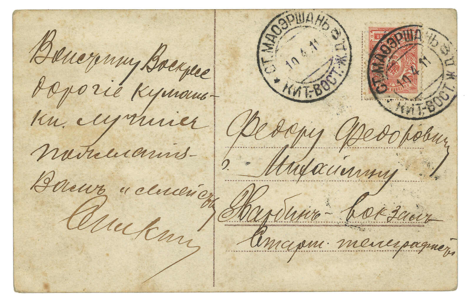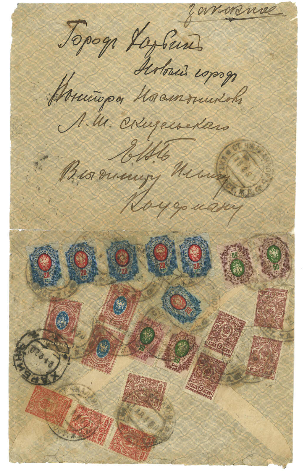1900-1910s collection of about 25 Chinese Eastern Railway and Manchuria Russian PO covers and postcards, containing many scarce railway station postmarks such as Bukhedu, Fulya-Erdi, Utzimi, Maoershang, Djalainor, Imyangpo,