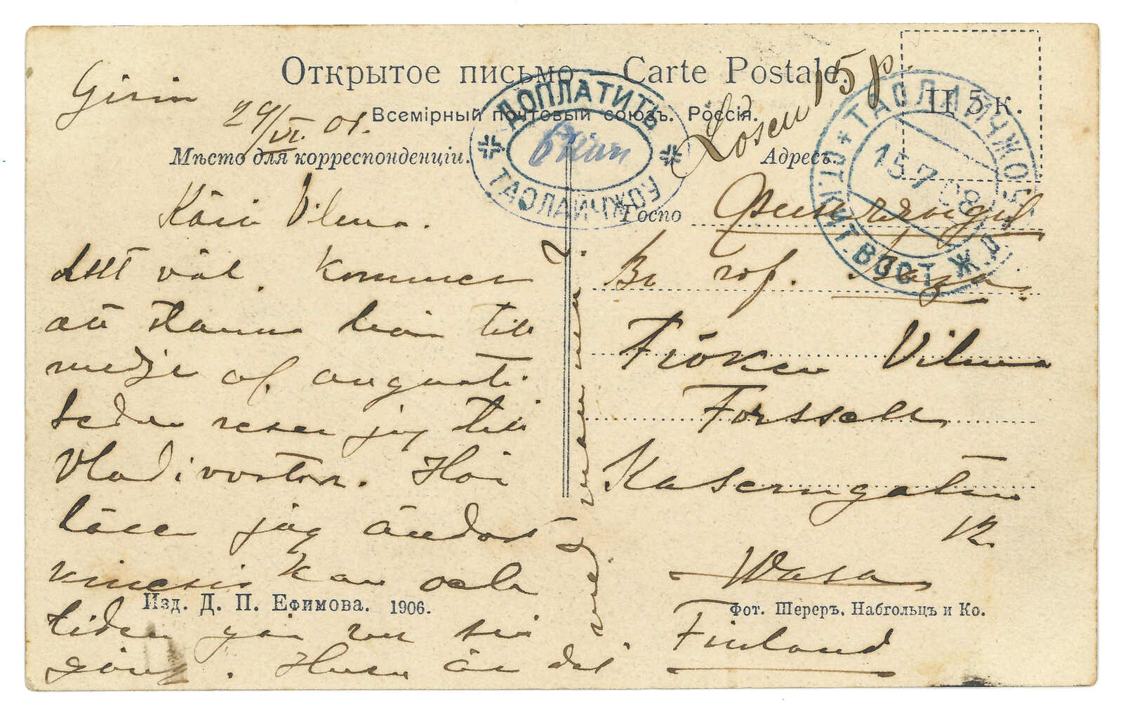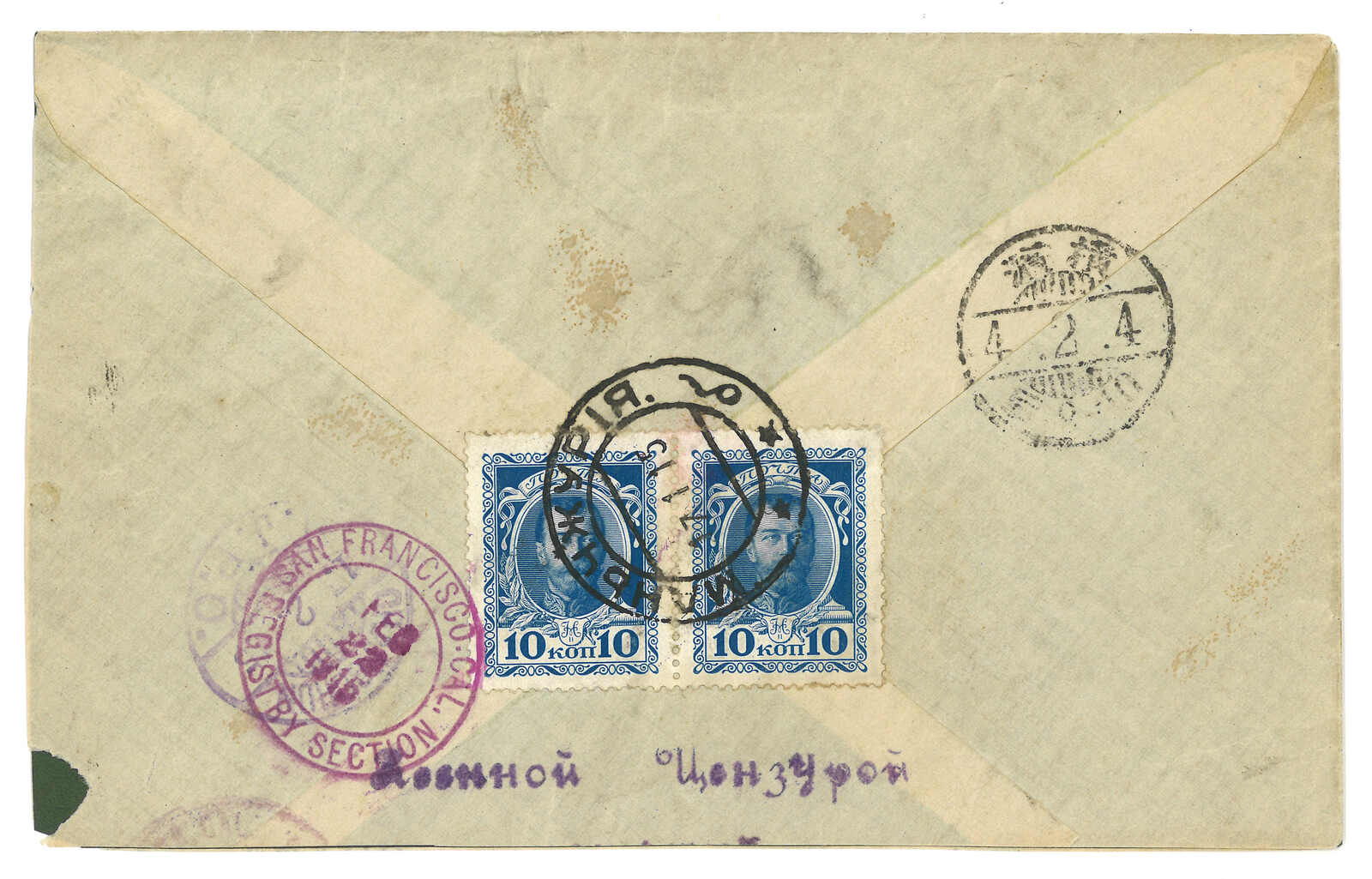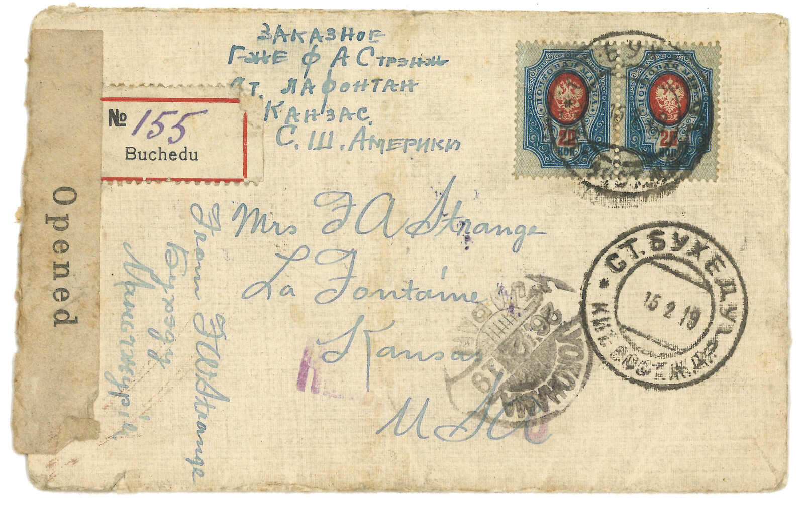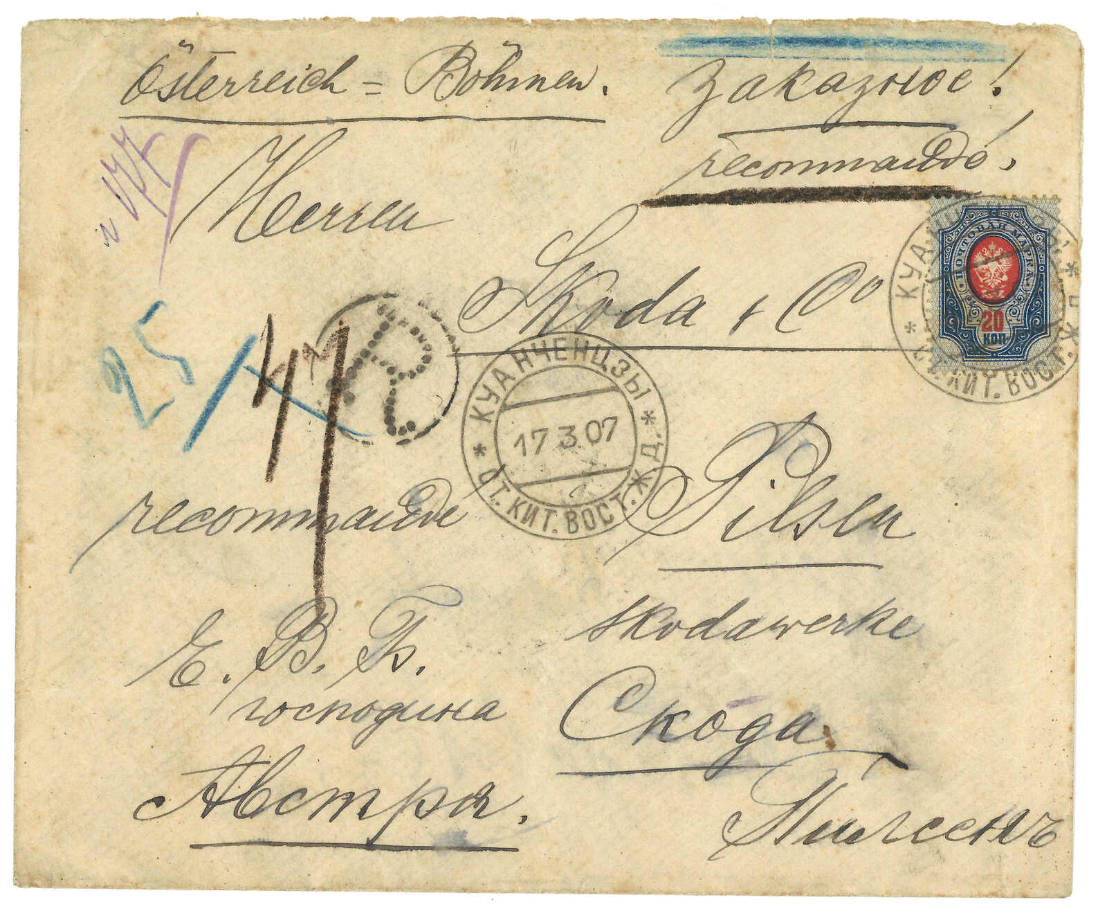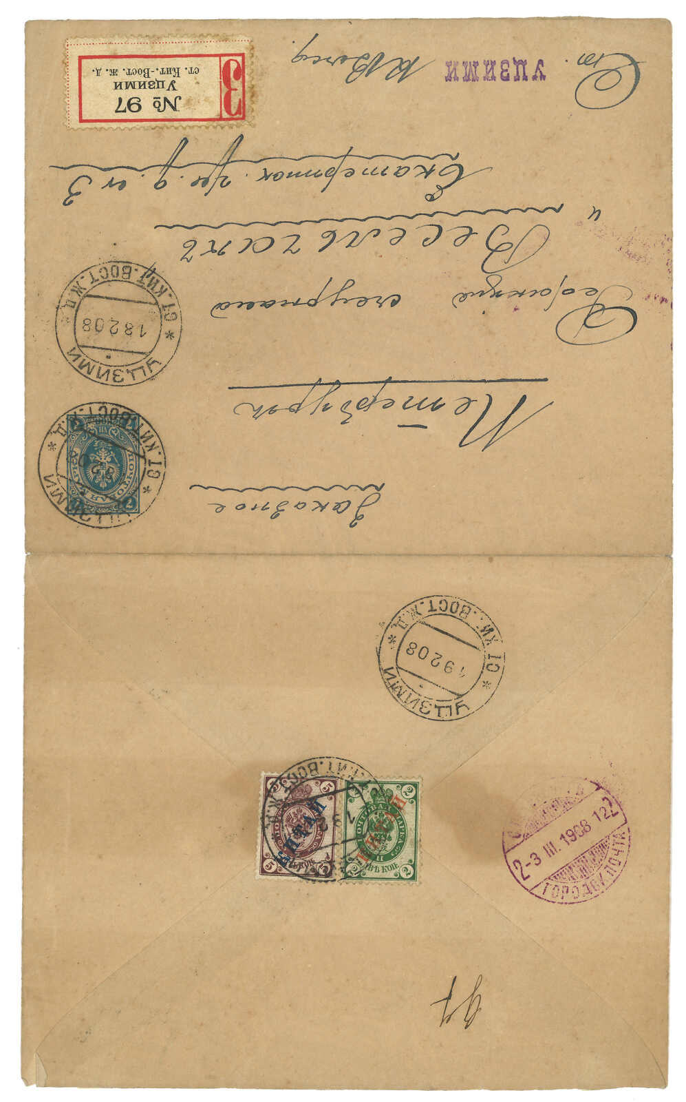 2戈比,銷Gorodishche日戳。1.19抵綏芬河俄局,鈐少見之T&S 2a型日戳。(Image 1)