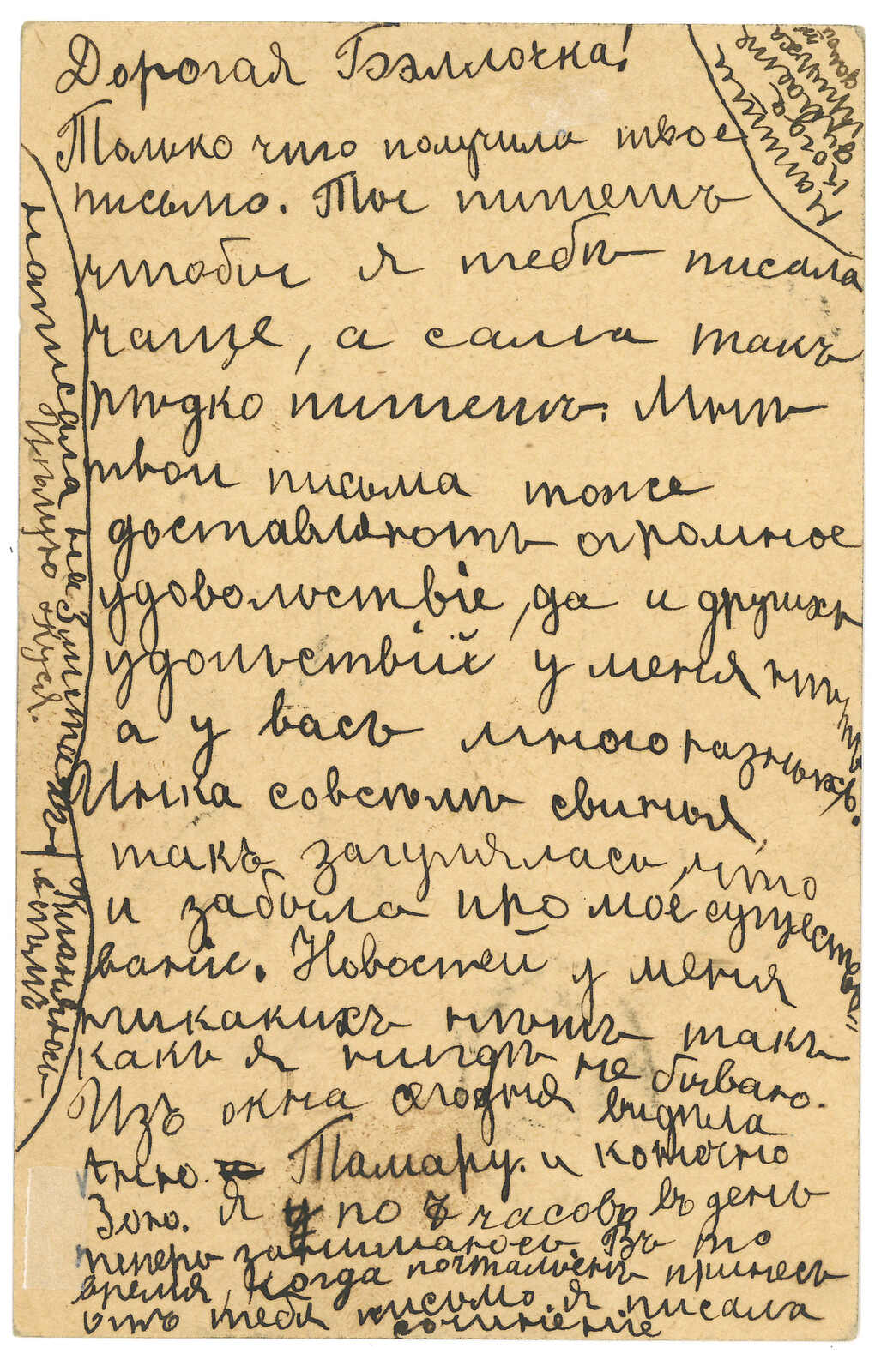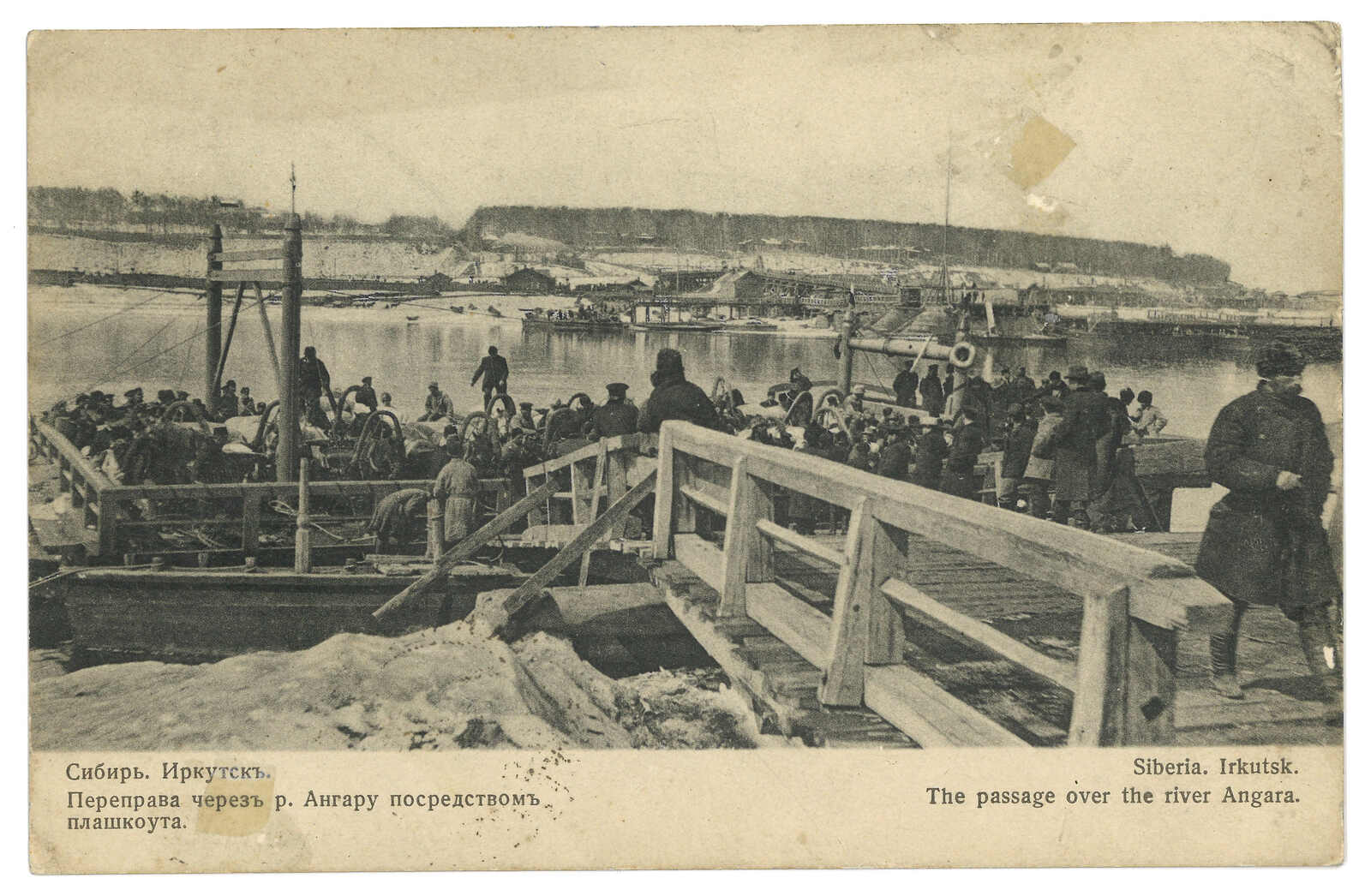滿洲里寄哈爾濱。圖片明信片,貼軍徽圖3戈比,銷滿洲里俄局T&S 2b型日戳,旁鈐4型檢查章。2.6抵哈爾濱俄局。(Image 1)