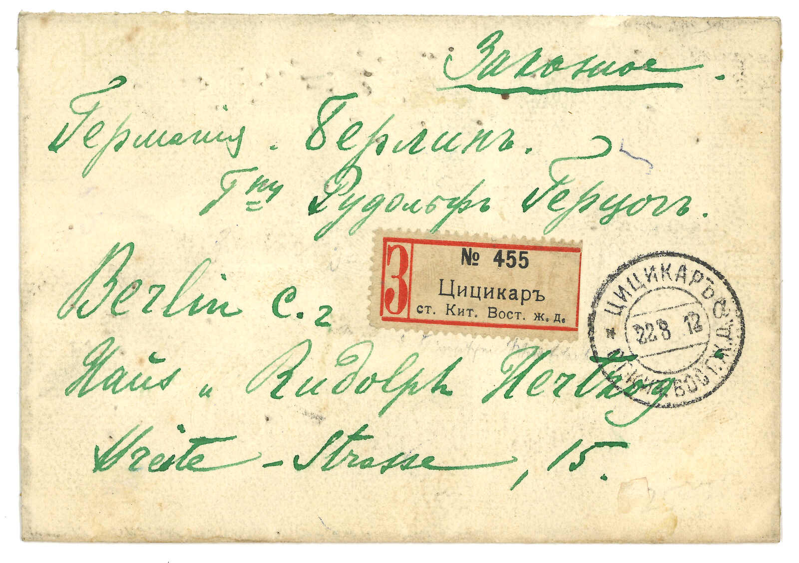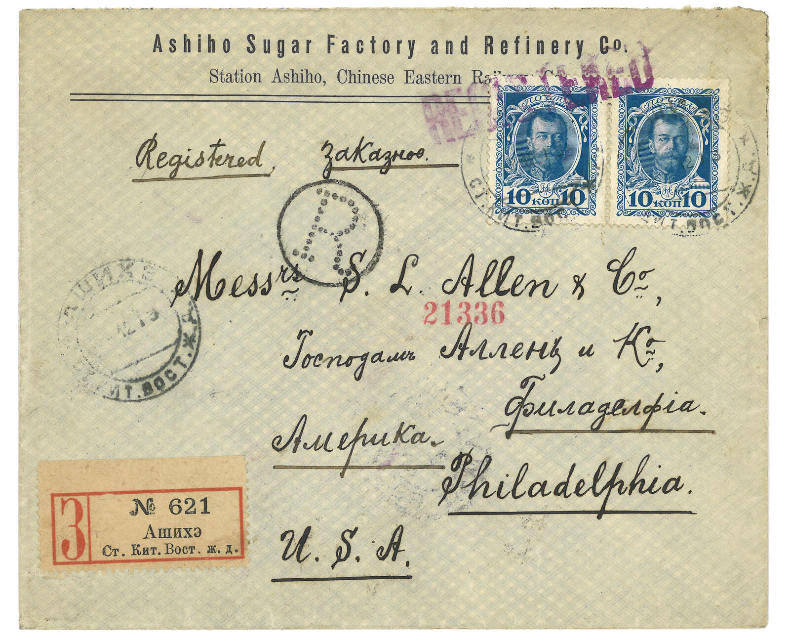 1900至1910年代一組約25件中東鐵路及滿洲俄國郵局封片,包括不少稀罕難得之郵戳,如博克圖、富拉爾基、烏吉密、帽兒山、 扎賚諾爾、一面坡、鳳凰城、阿什河、寬城子等。不少地名於T&S記錄中僅有數件,甚至無例子存世。部分出自Dr. Raymond Casey集藏並見於David Feldman拍賣記錄。中東鐵路向來為難以蒐集之集郵題材,此實為一網打盡之上佳選項。(Image 1)