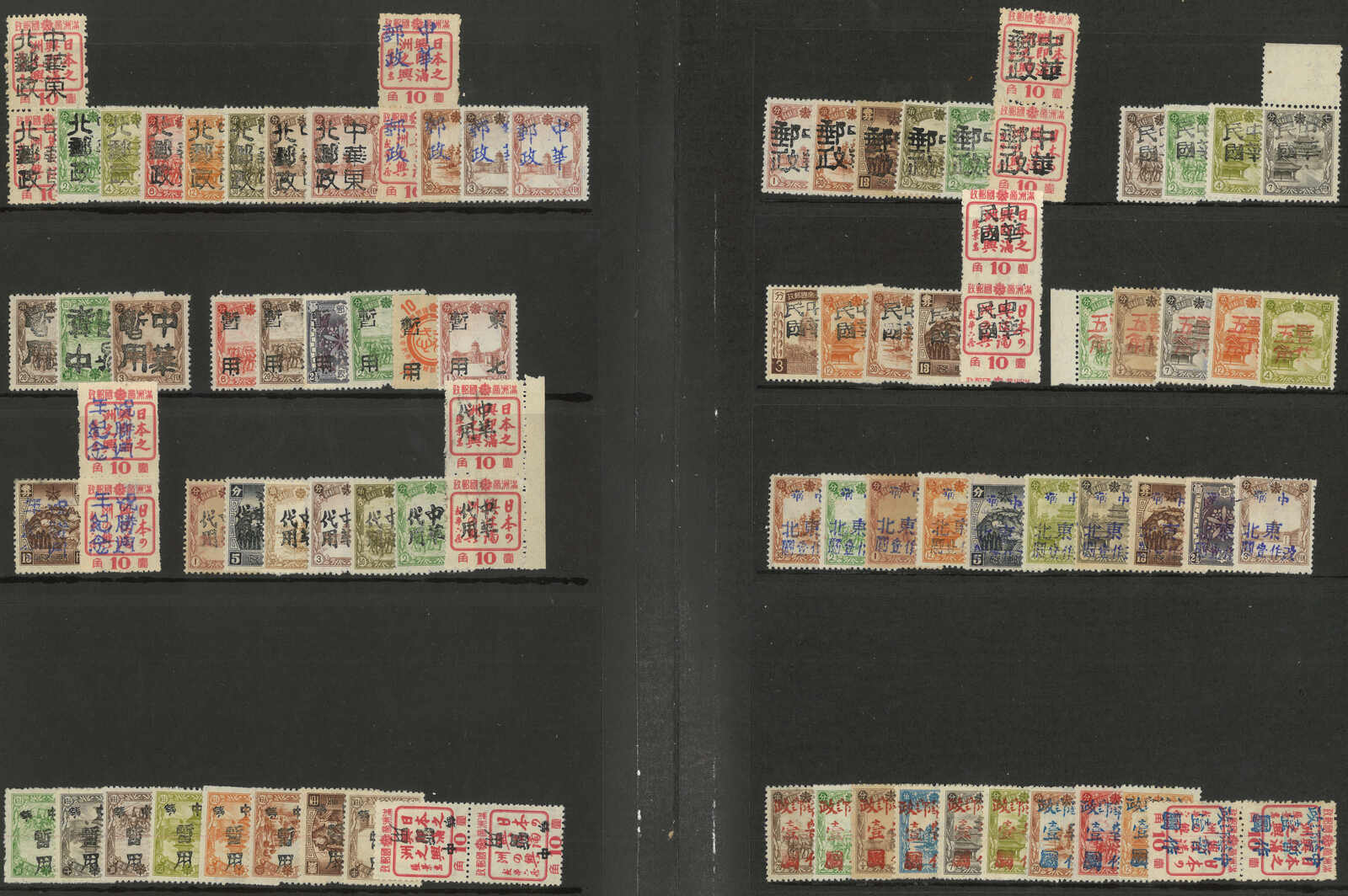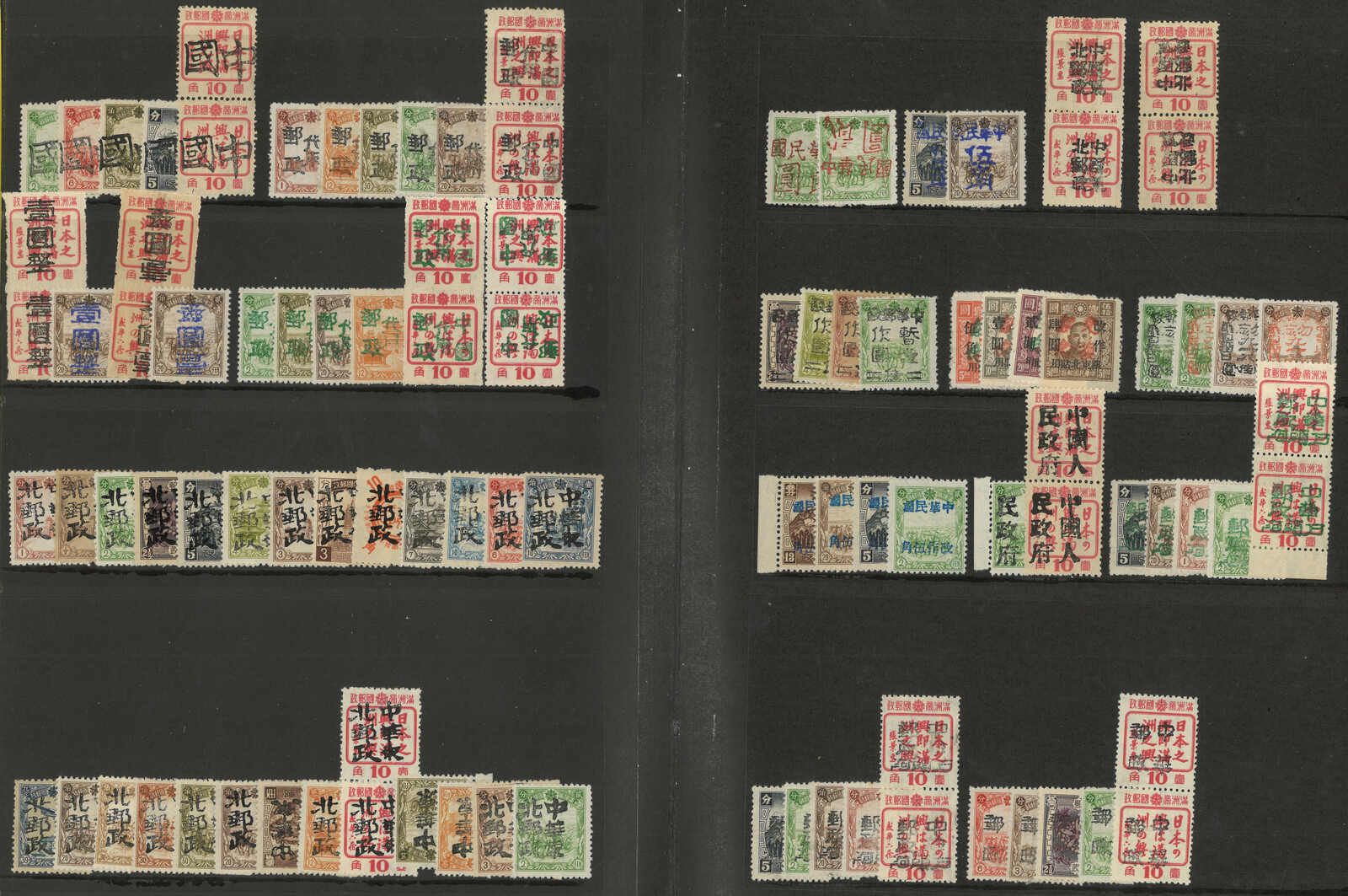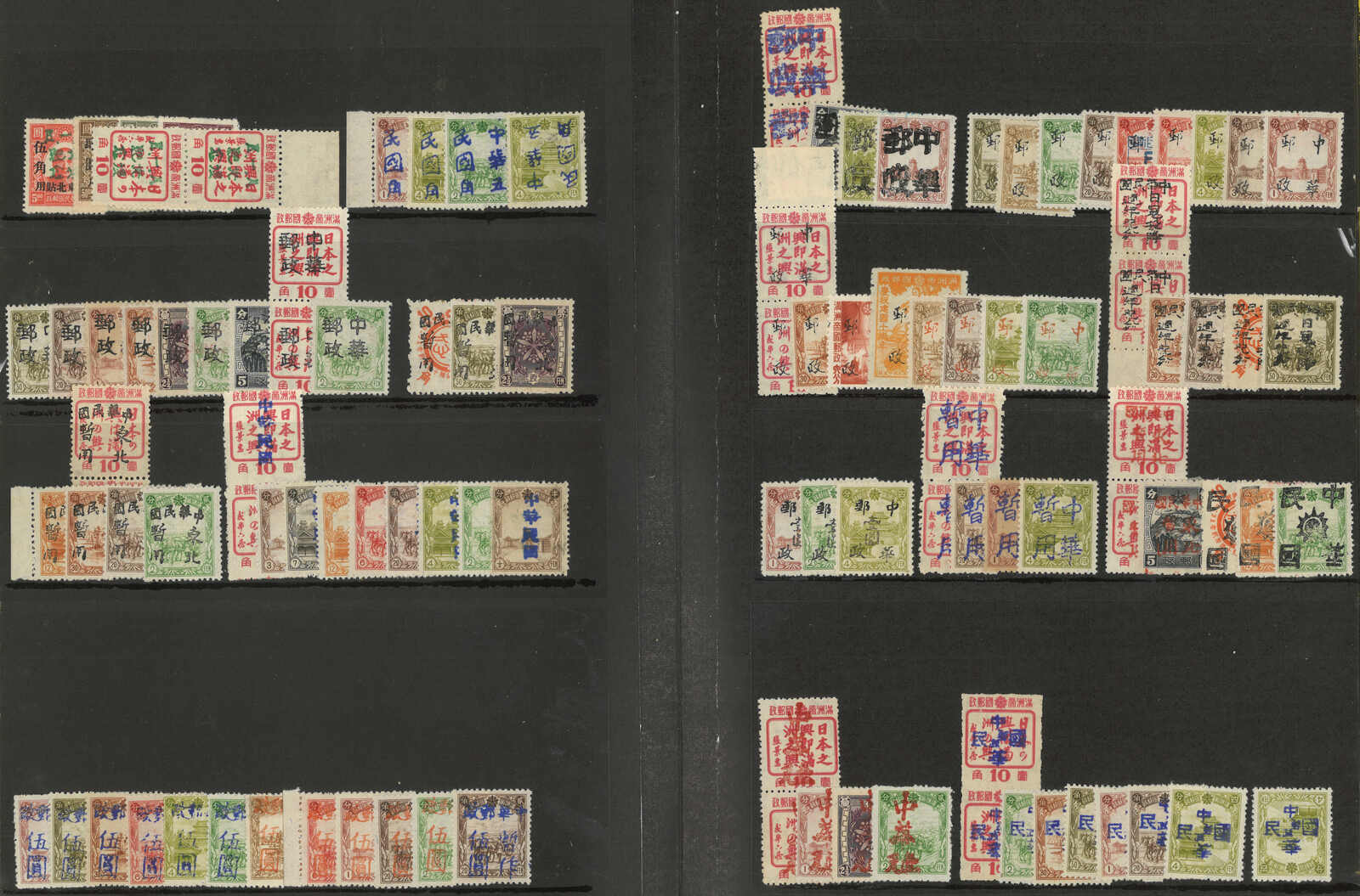 1946 an album of about 600 Northeast local surch on Manchukuo issues mint and used stamps, showcasing overprint from different towns. Very comprehensive. Please view.