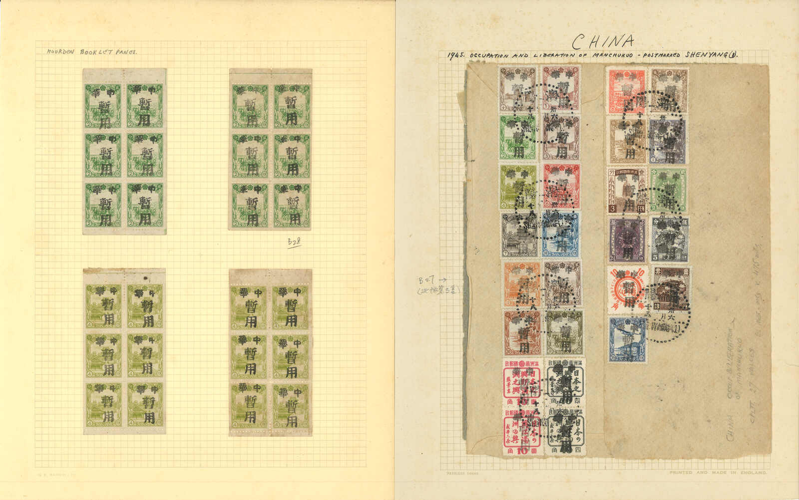 3289 o image1947 Moukden ovpt "Chinghwa Temporary Use" on Manchukuo issuss on cover back and multiples. Former tied by Moukden cds while latter mint.