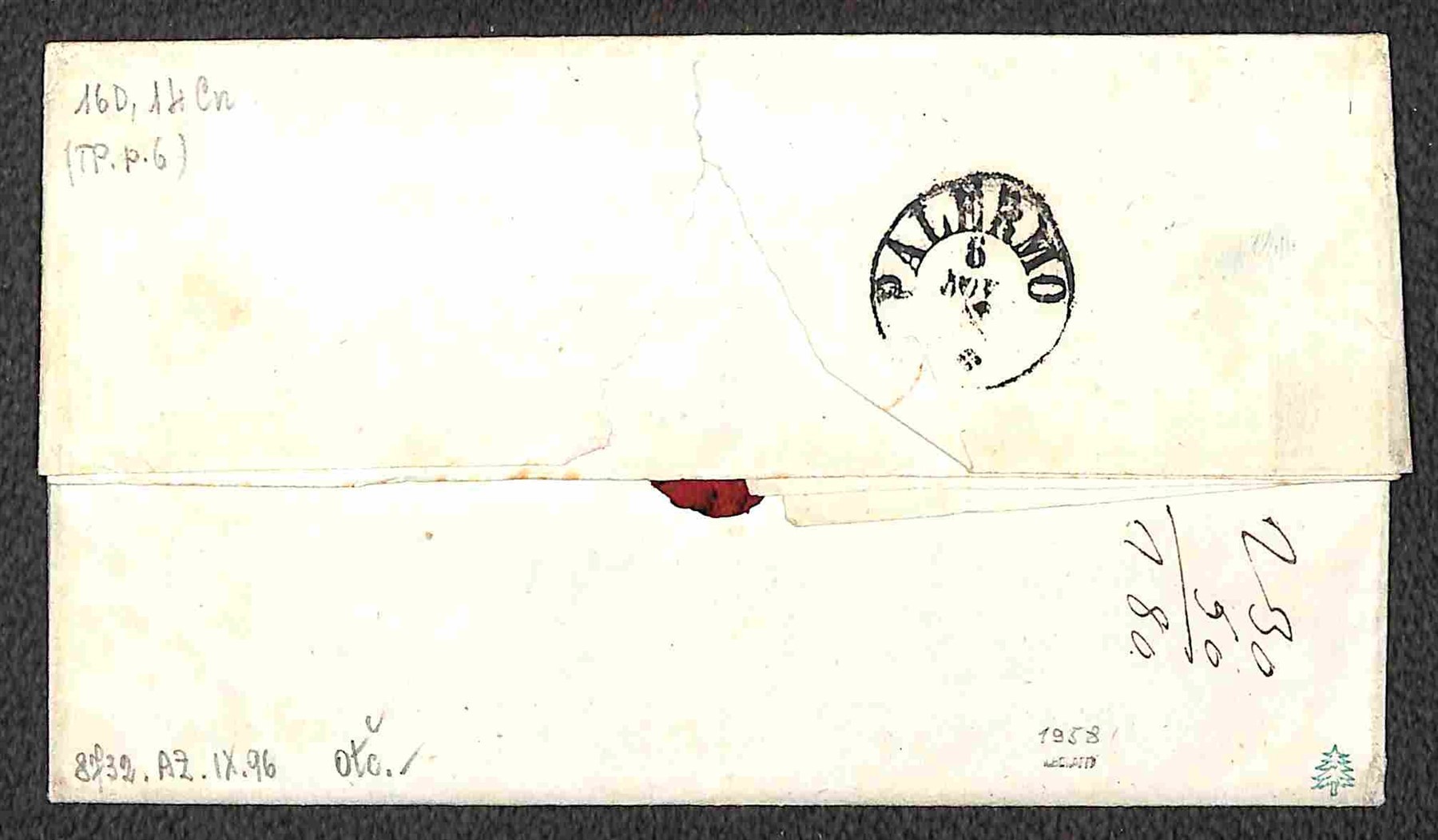 fresca lettera con 10 cent bruno tenue + 40 cent rosso carminio (14Ch + 16D) da Castelvetrano (P.ti 6) a Palermo del 5.11.61 - molto bella - ex coll. Provera - Giulio Bolaffi (Image 1)