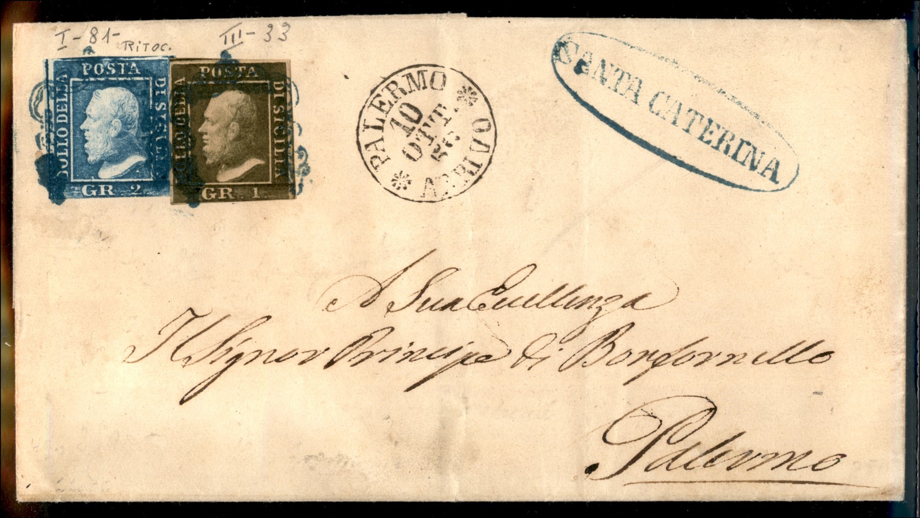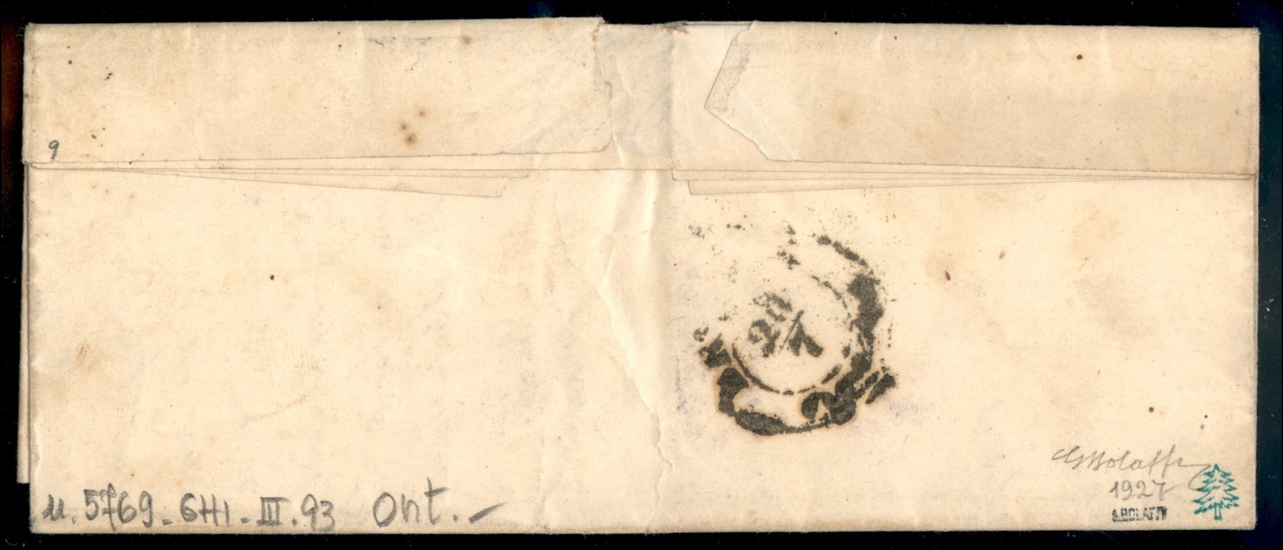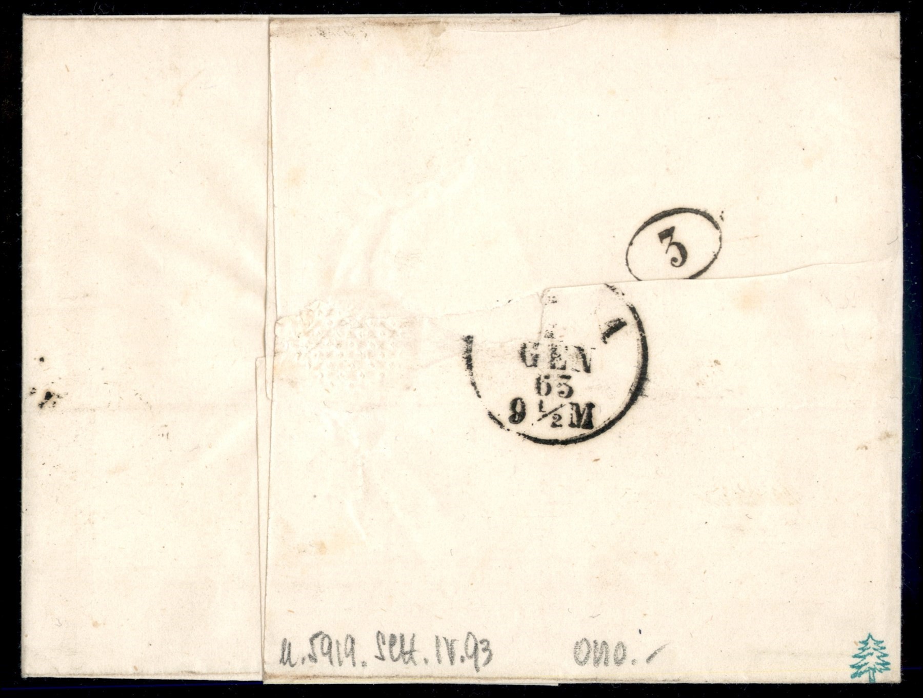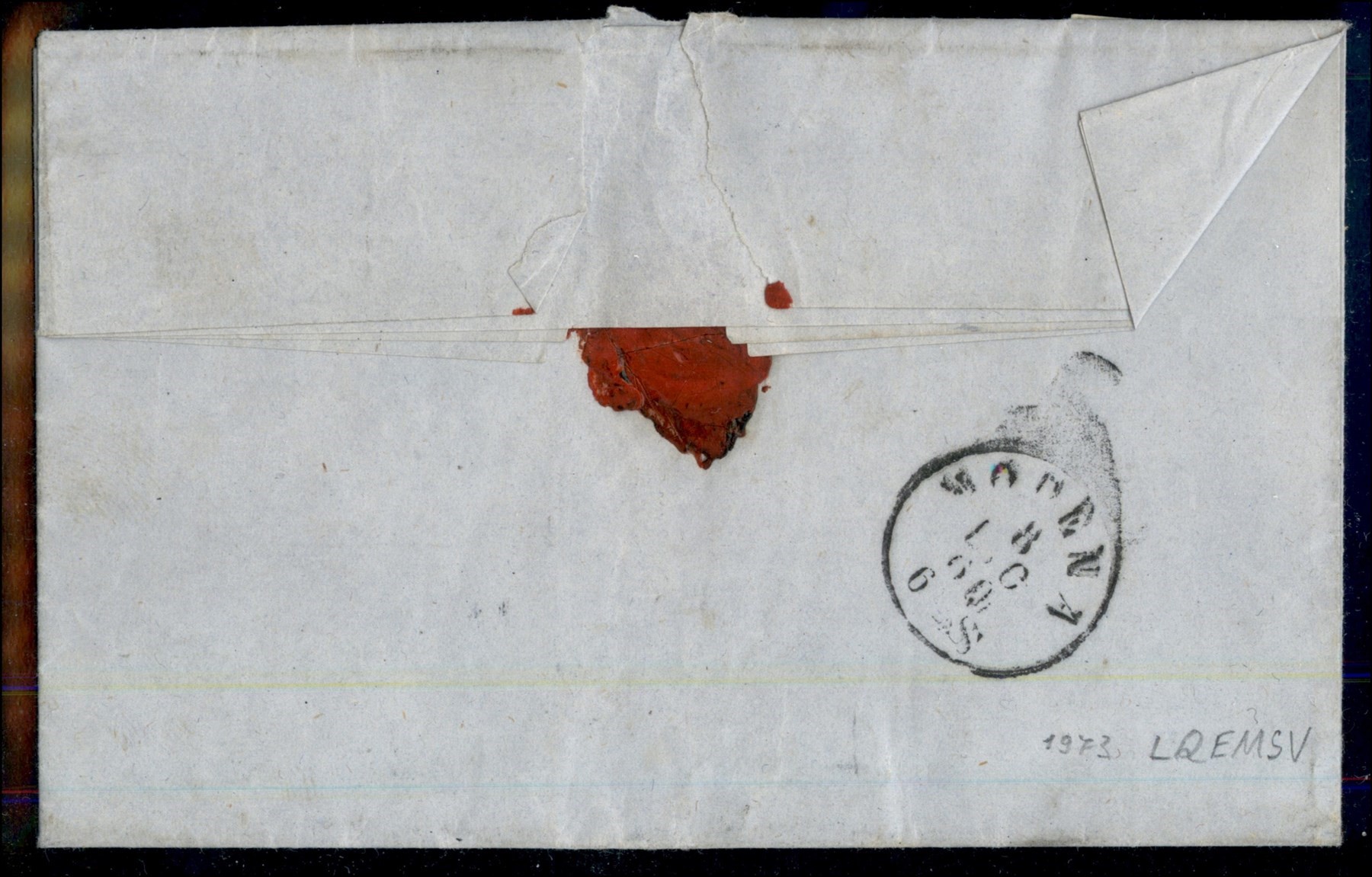 Lettera da Monte Milone (p. R1) a Rimini 13.4.61 affrancata con 20 cent. azzurro oltremare II tav. (Sass. 15Dc) – Molto rara e SPL Cert. (Image 1)