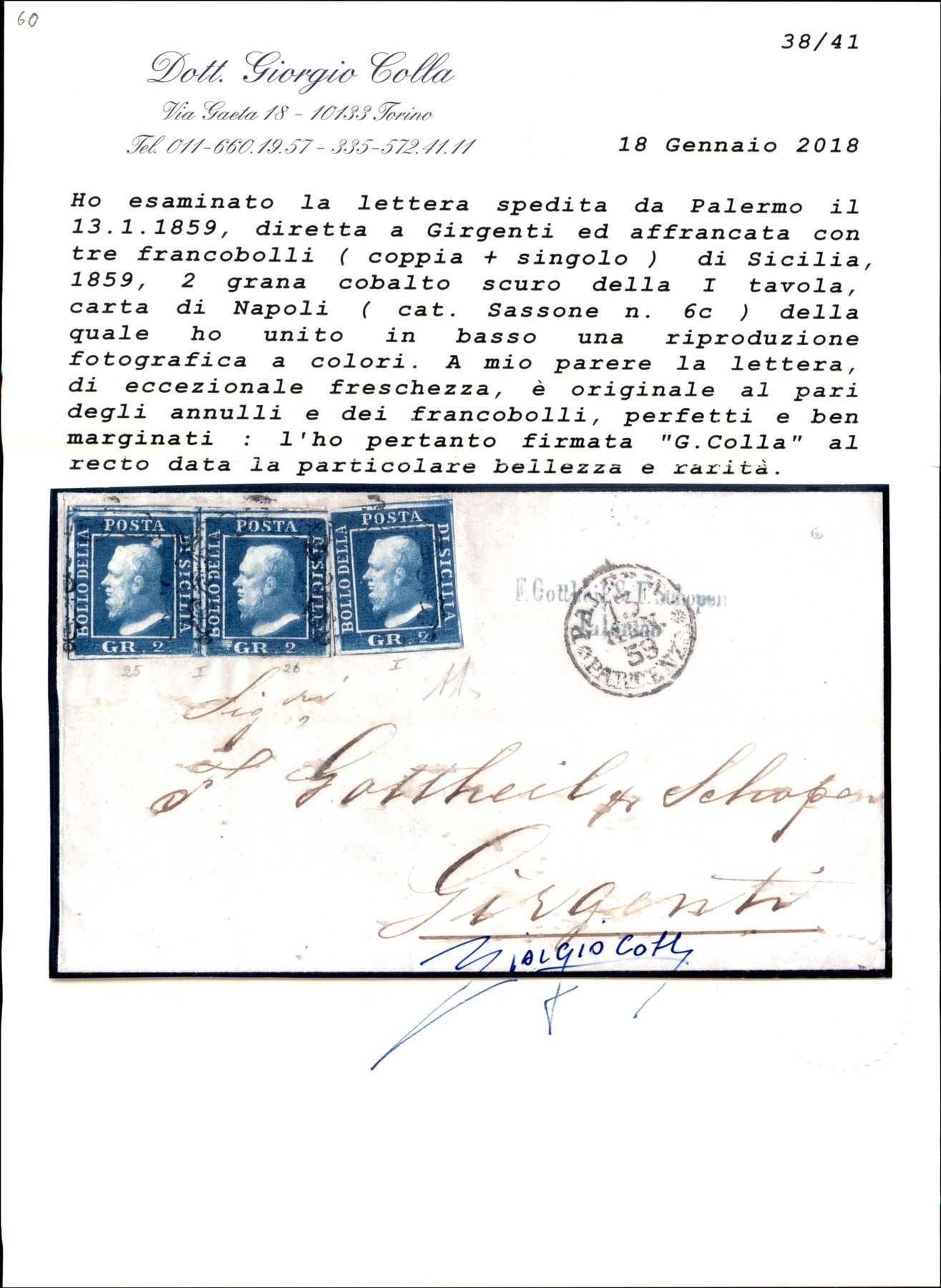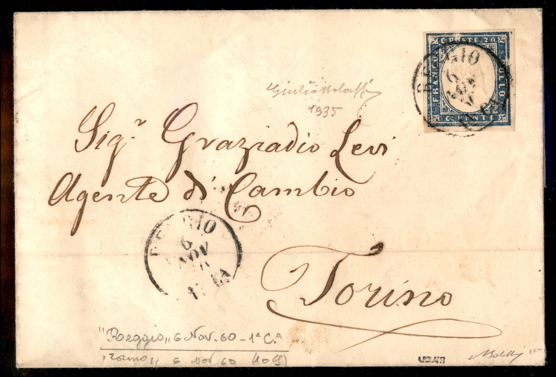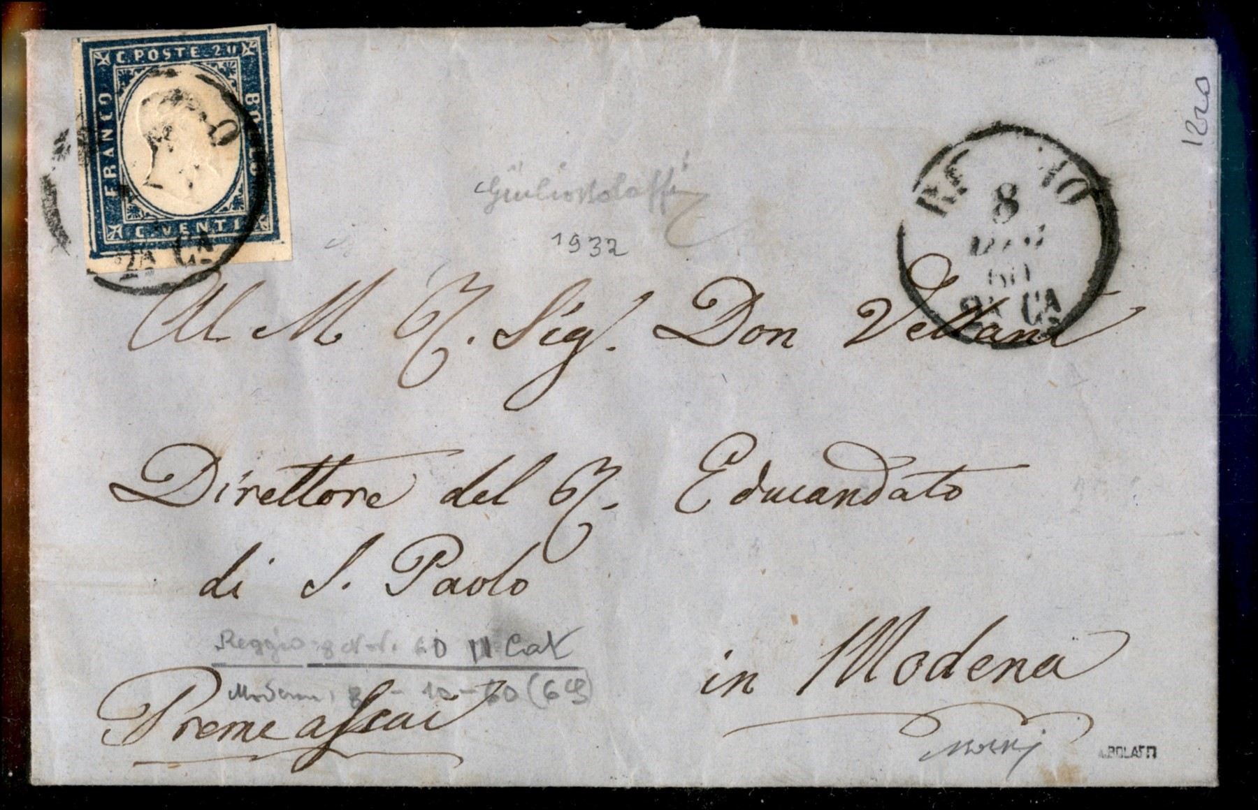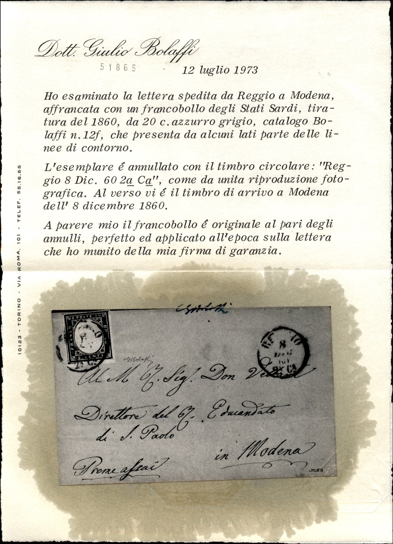 esemplare ben marginato del 20 cent azzurro grigio (15Cc) su lettera da Reggio a Modena del 8.12.60 - cert. G. Bolaffi (Image