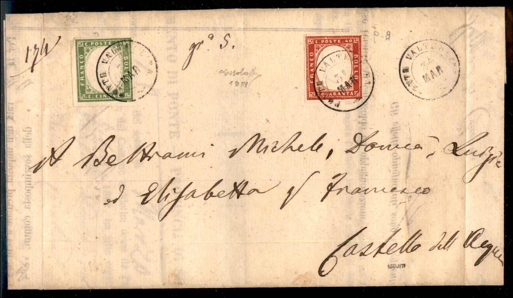 Mandato di pagamento affrancato con 5 cent + 40 cent (130 + 16E) da Ponte Valtellina (P.ti 8) a Castello dell'Acqua del 31.3.62 - G. Bolaffi (Image 1)