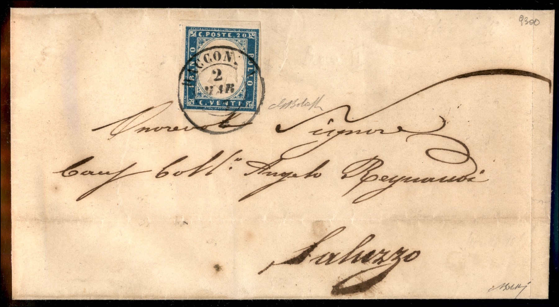 Fresco esemplare del 20 cent cobalto grigio (15Cb) su lettera da spezia a Sarzana del 16.4.61 - molto bella - cert. G. Bolaffi (Image 1)