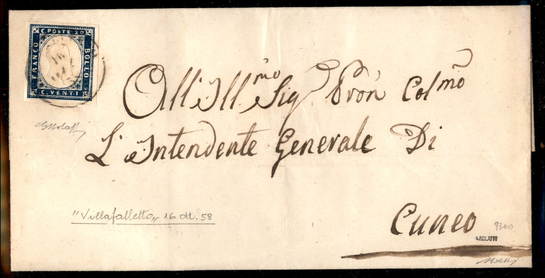 Villa Falletto (P.ti 7) - fresco esemplare del 20 cent (15A) su lettera per Cuneo del 16.10.58 - G. Bolaffi (Image 1)