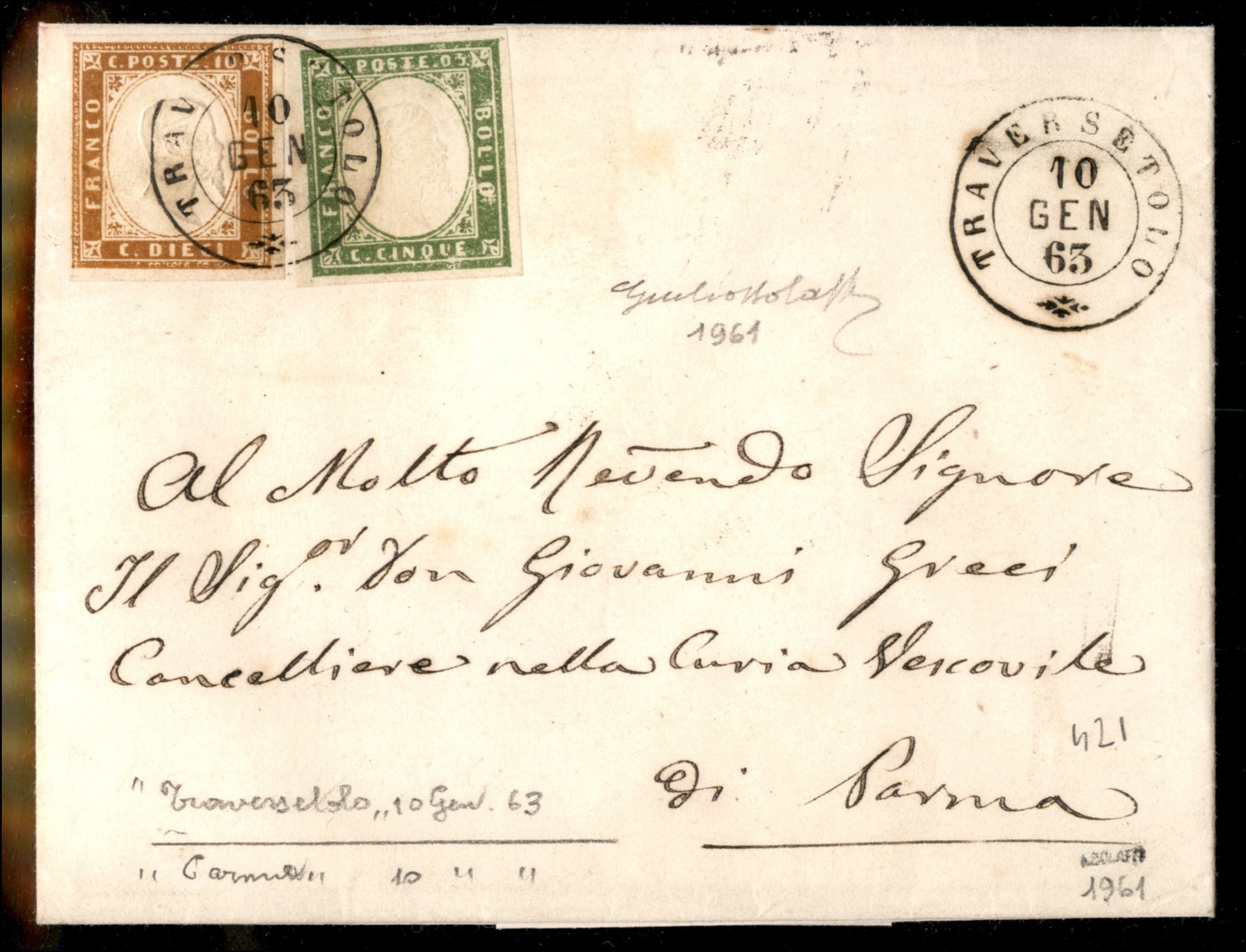 Traversetolo (P.ti 10) - 5 cent + 10 cent (13E + 14E) su letterina per Parma del 10.1.63 - splendida - ex coll. Provera - Giulio Bolaffi (Image 1)