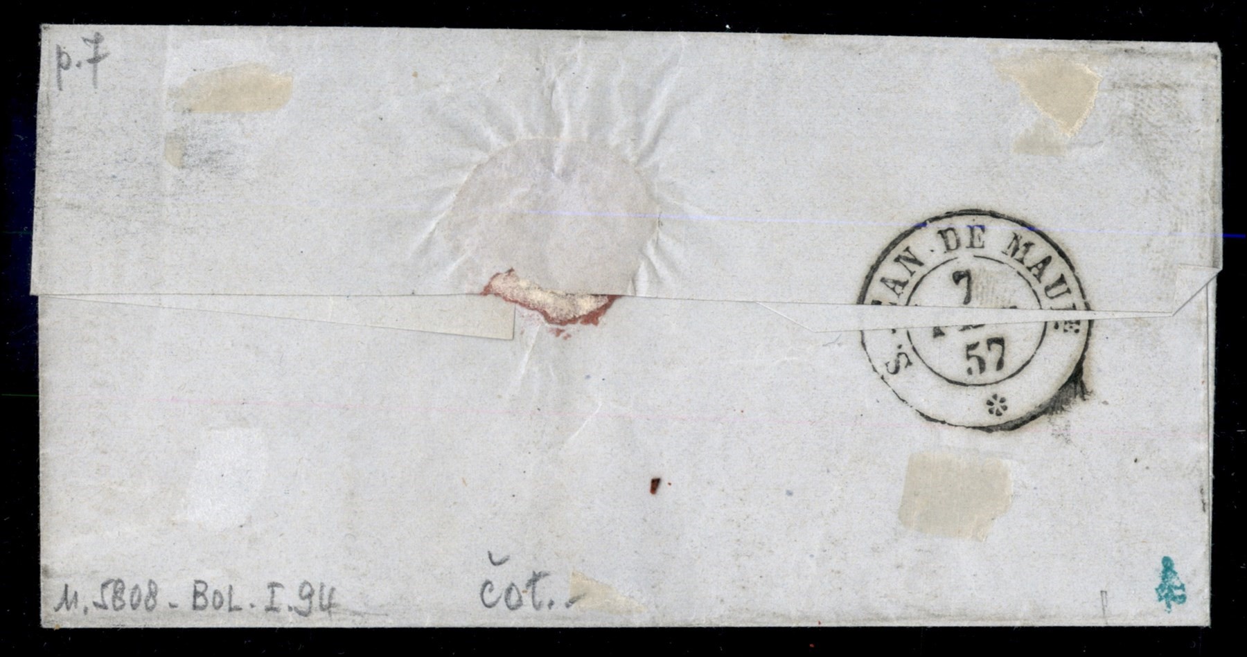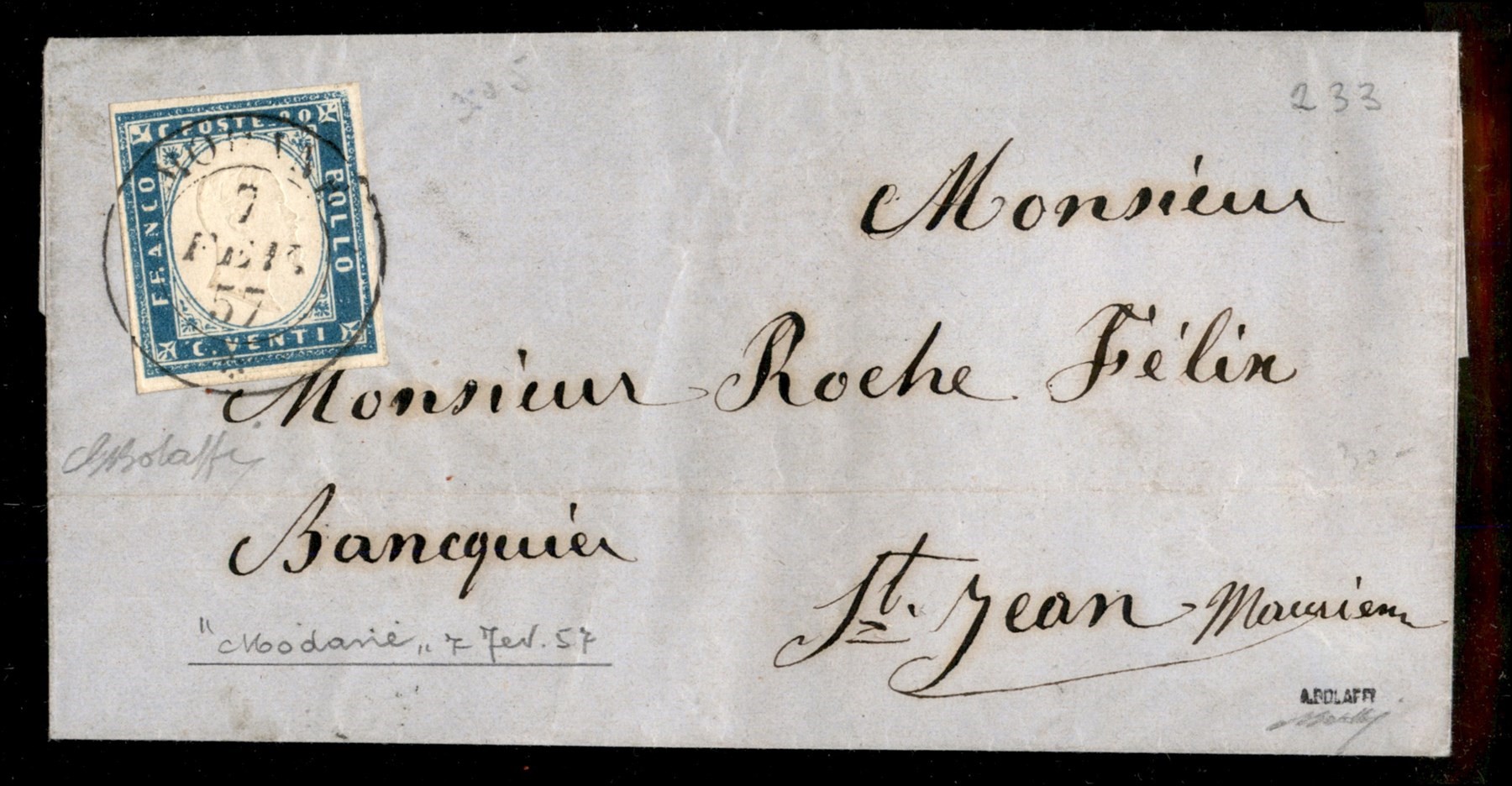 Modane (P.ti 7) - bell'esemplare del 20 cent celeste (15f) su bustina per St. Jean Marittime del 7.2.57 - molto bella - ex coll. Em. filiberto e Provera - Bolaffi (Image 1)