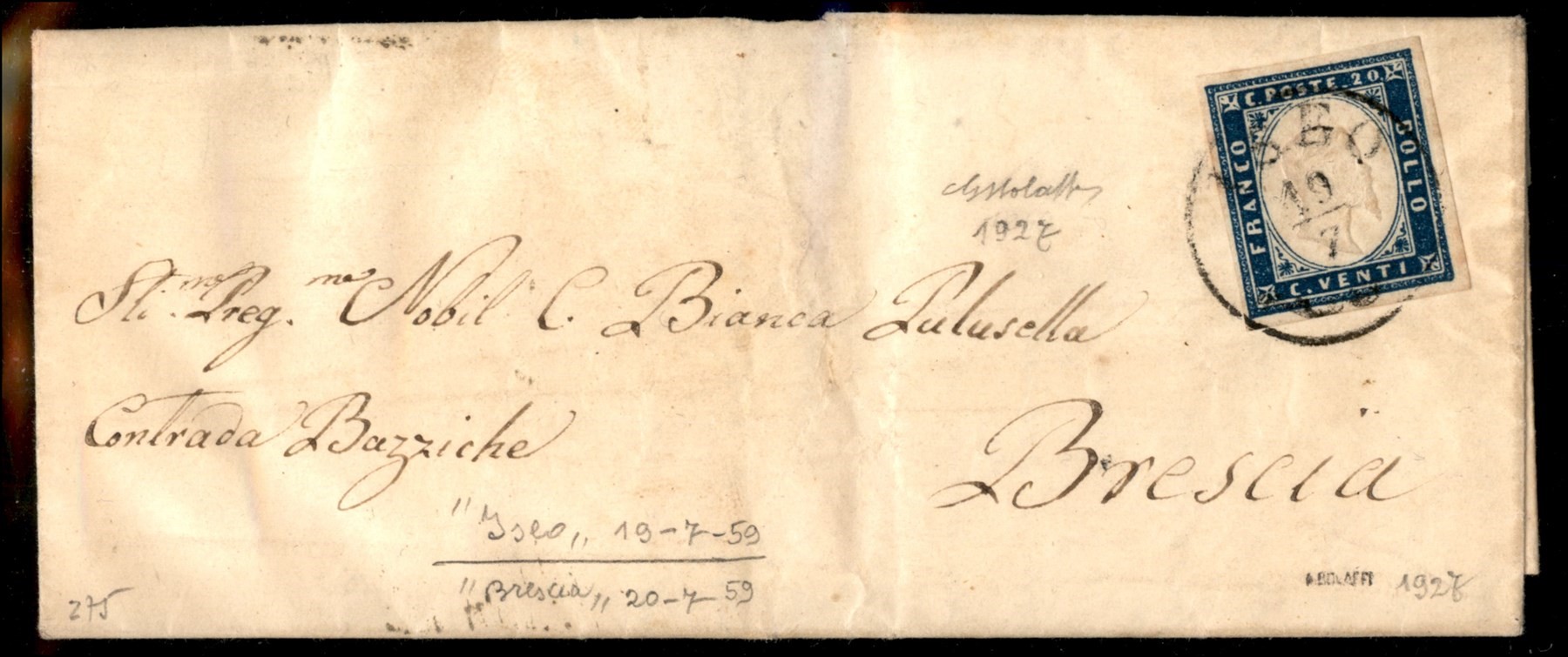 Iseo (P.ti 9) - 20 cent indaco oltremare (15Bb) su lettera per Brescia del 19.7.59 - ex coll. Provera - Bolaffi (Image 1)