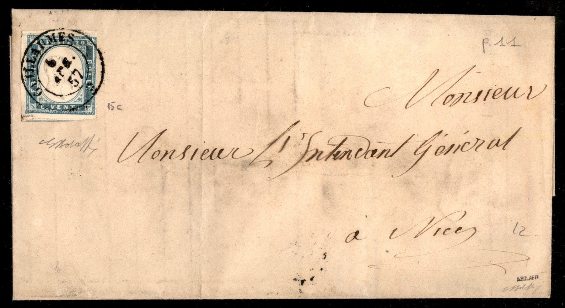 Guillaumes (Nizza - P.ti 11) - 20 cent cobalto latteo chiaro (15c) su lettera per Nizza del 6.4.57 - molto bella - Bolaffi (Image