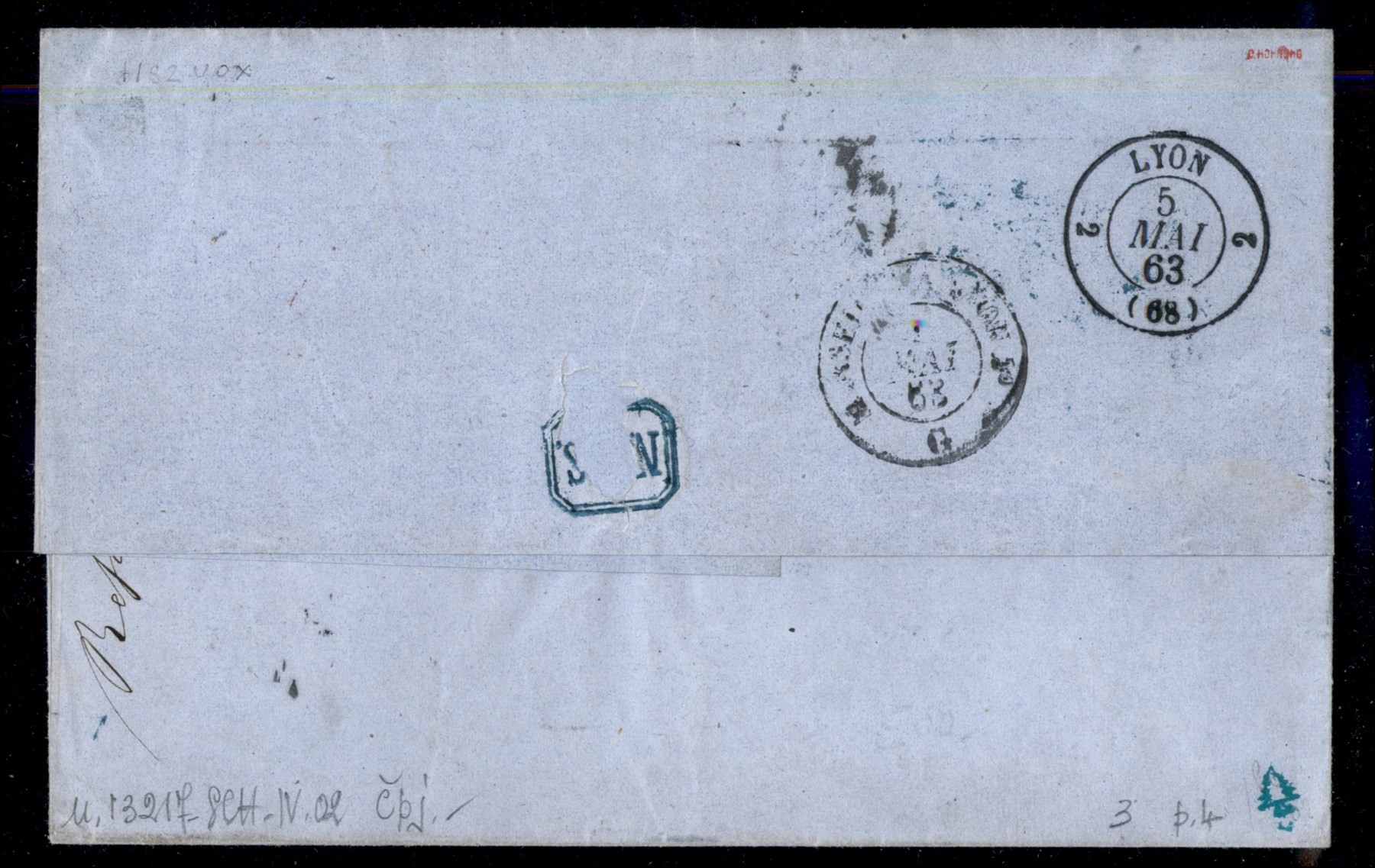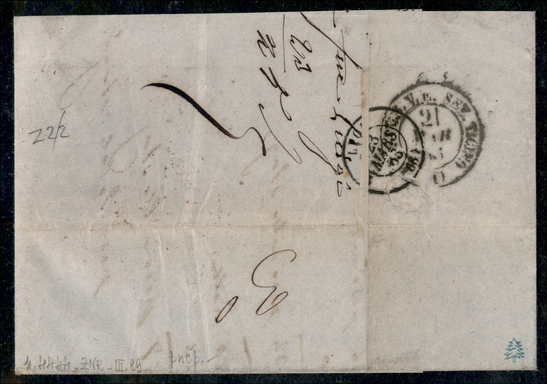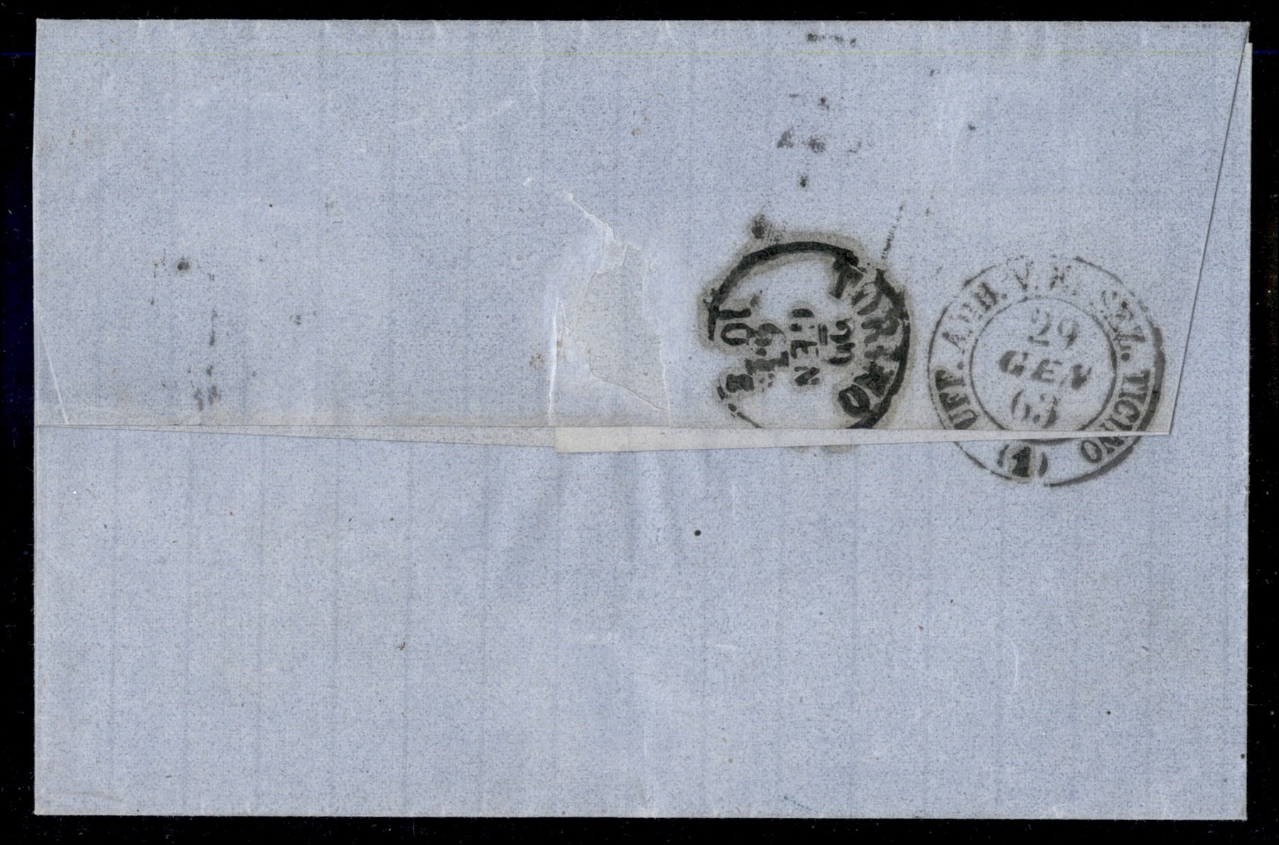 Lettera da Sorrento a Genova il 3.7.1863 con 15 cent. litografico (Sass. 13) annullato VIA DI MARE su due righe in rosso (p.5) (Image 1)