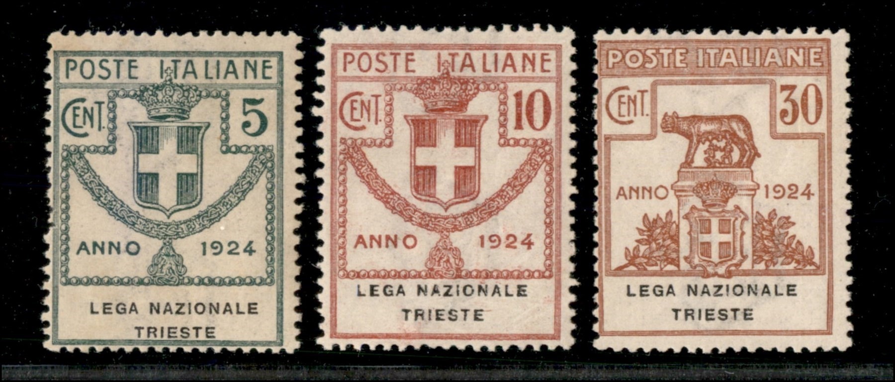 1924 - Parastatali - Lega Nazionale Trieste (42/44) - tre valori - gomma integra (Image 1)