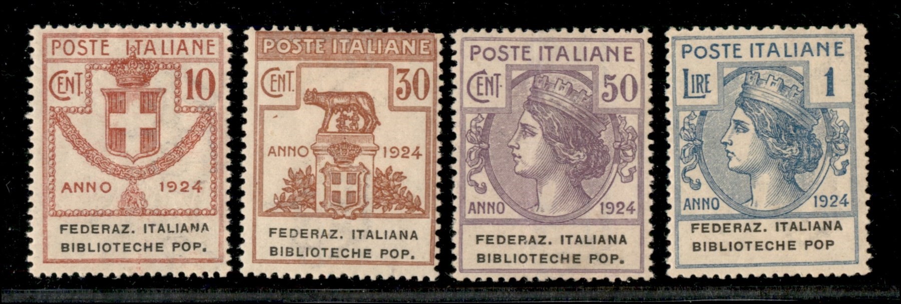 1924 - Parastatali - Federaz. Italiana Biblioteche Pop. (34/37) - serie completa - gomma integra (Image 1)
