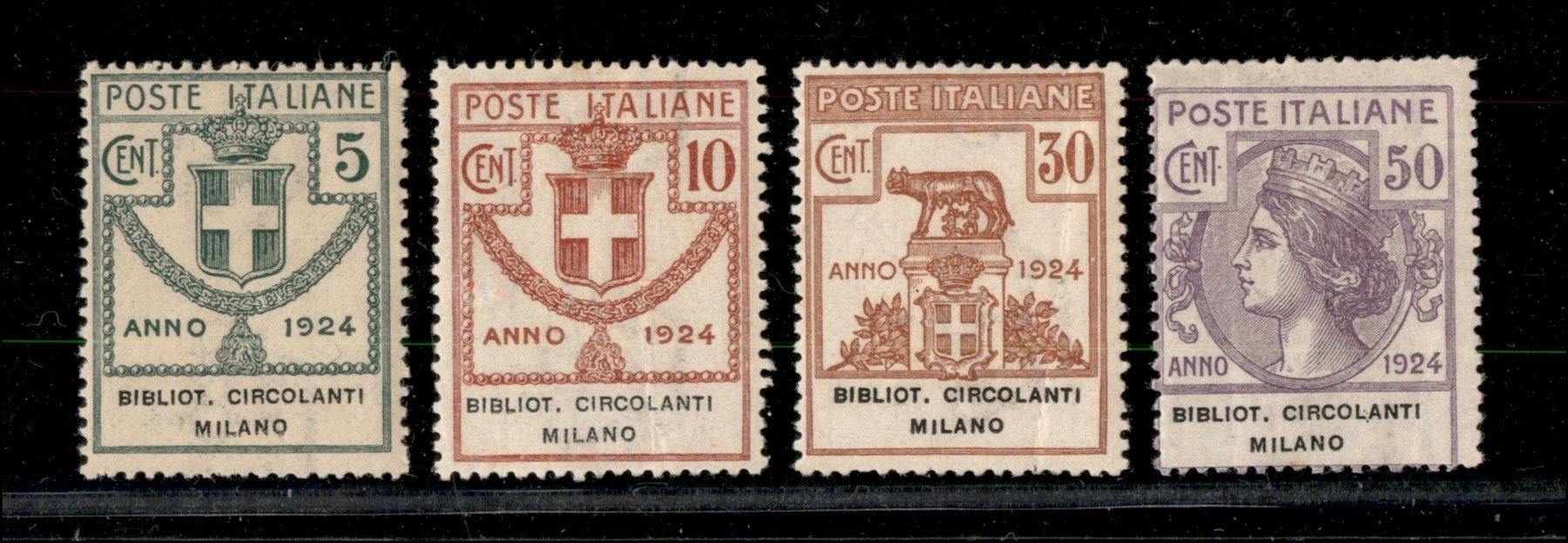 1924 - Parastatali - Bibliot. Circolanti Milano (13/16) - serie completa - gomma integra (Image 1)