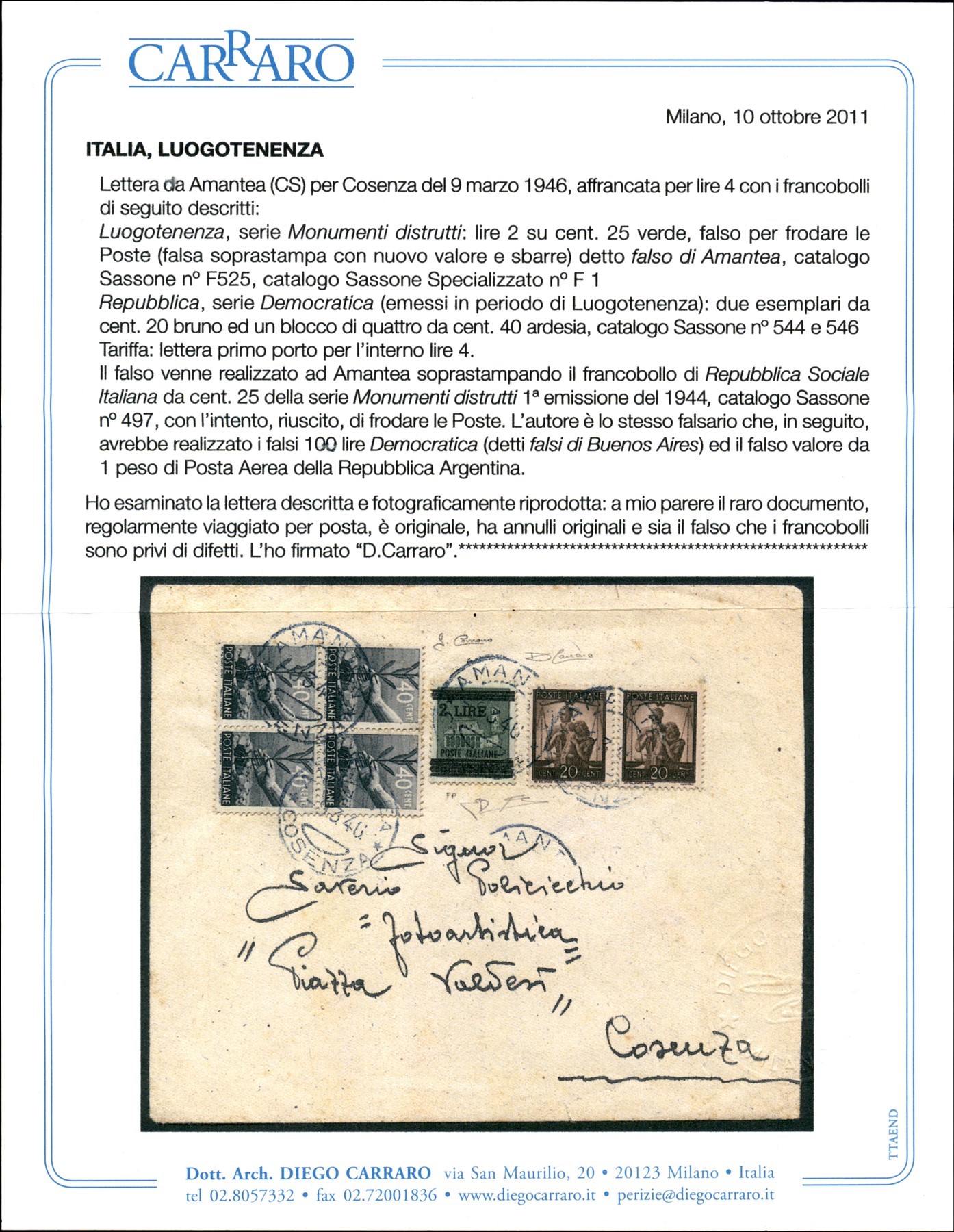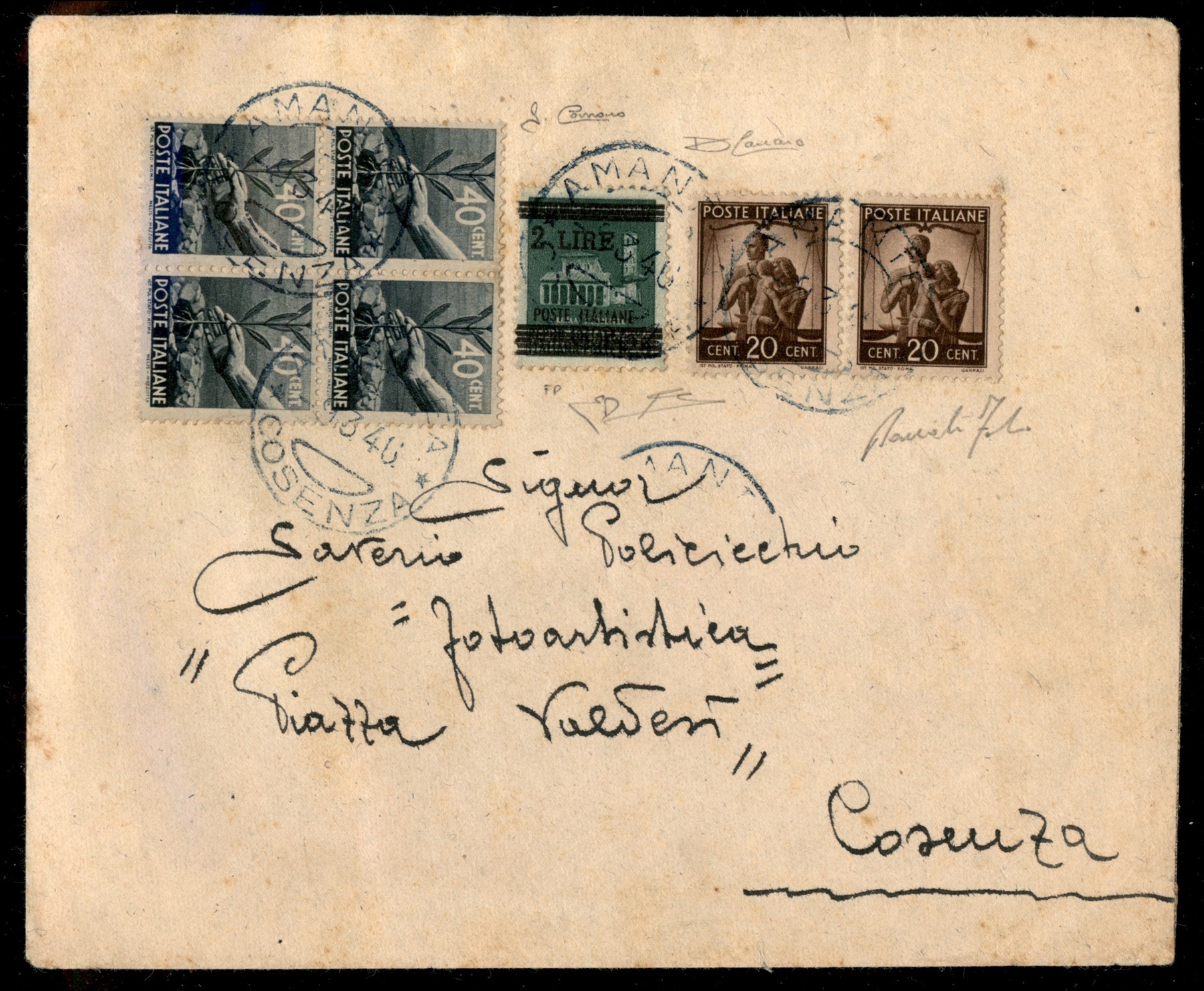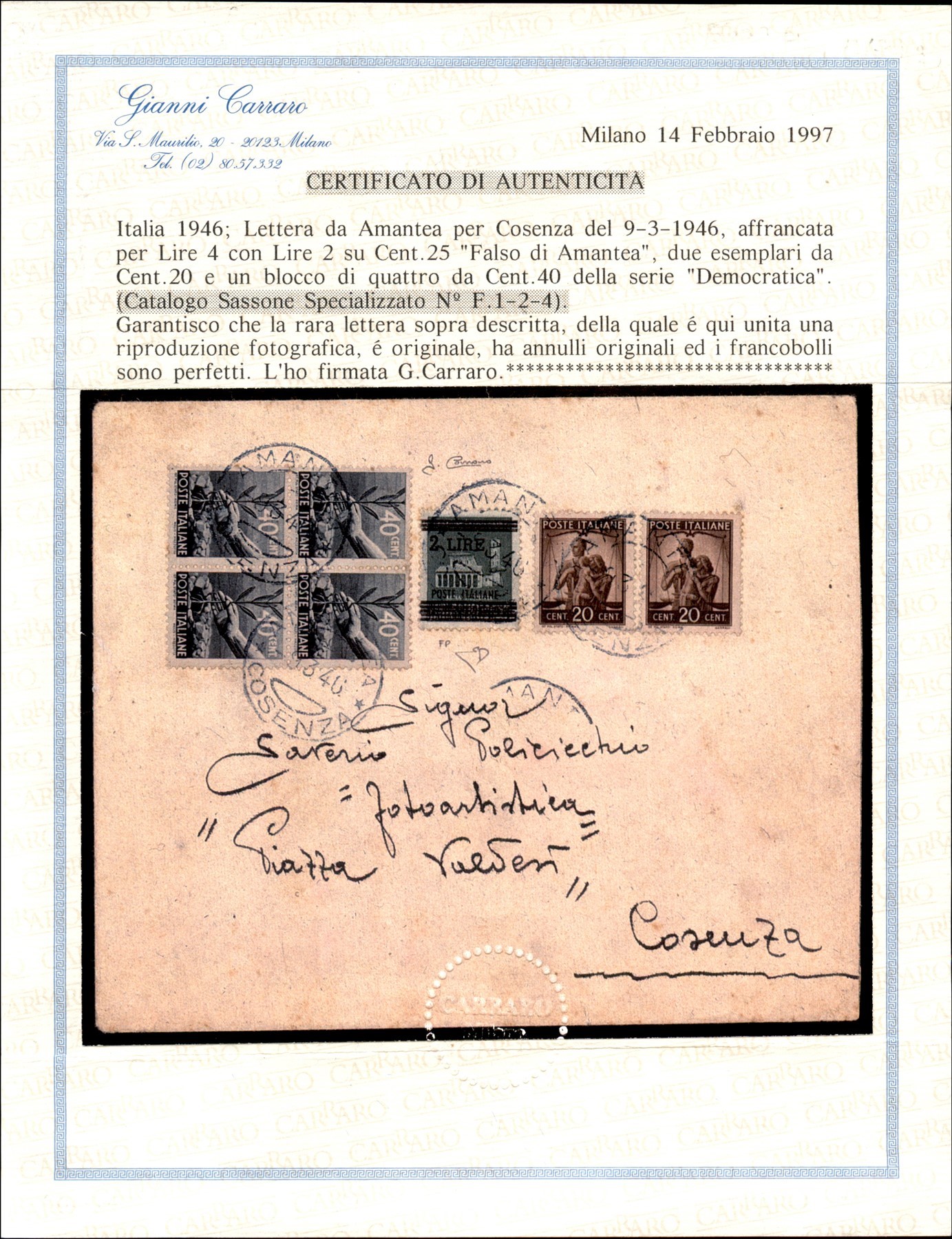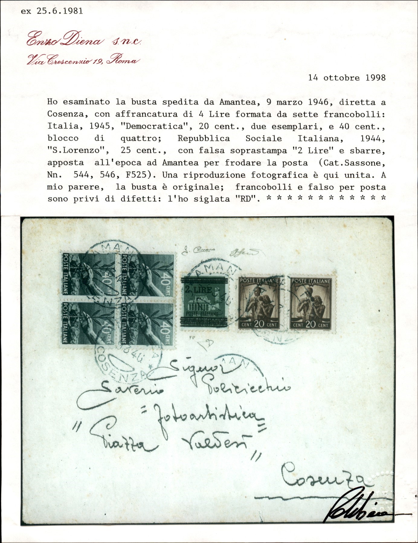 Pubblicitari - Due esemplari 25 cent Tagliacozzo (8) su piego da Montalto di Castro a Fiuminata del 2.2.25 - in tariffa manoscritti - non comune uso - cert. Diena (Image 1)