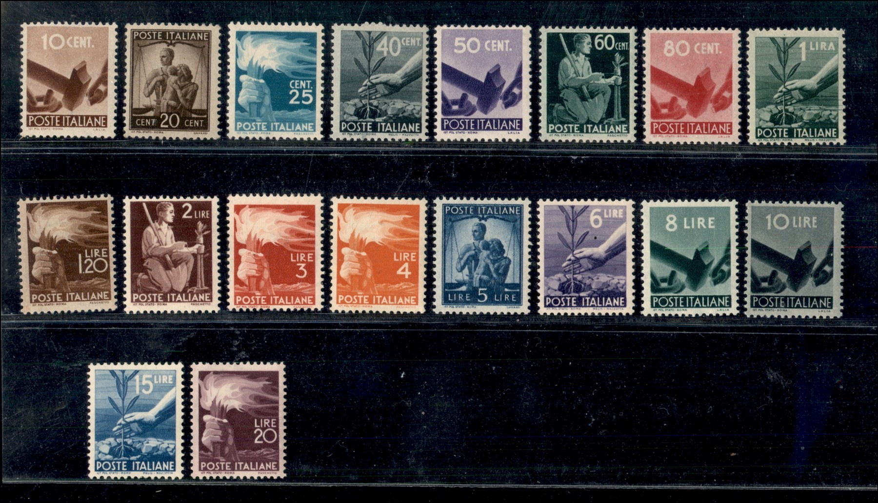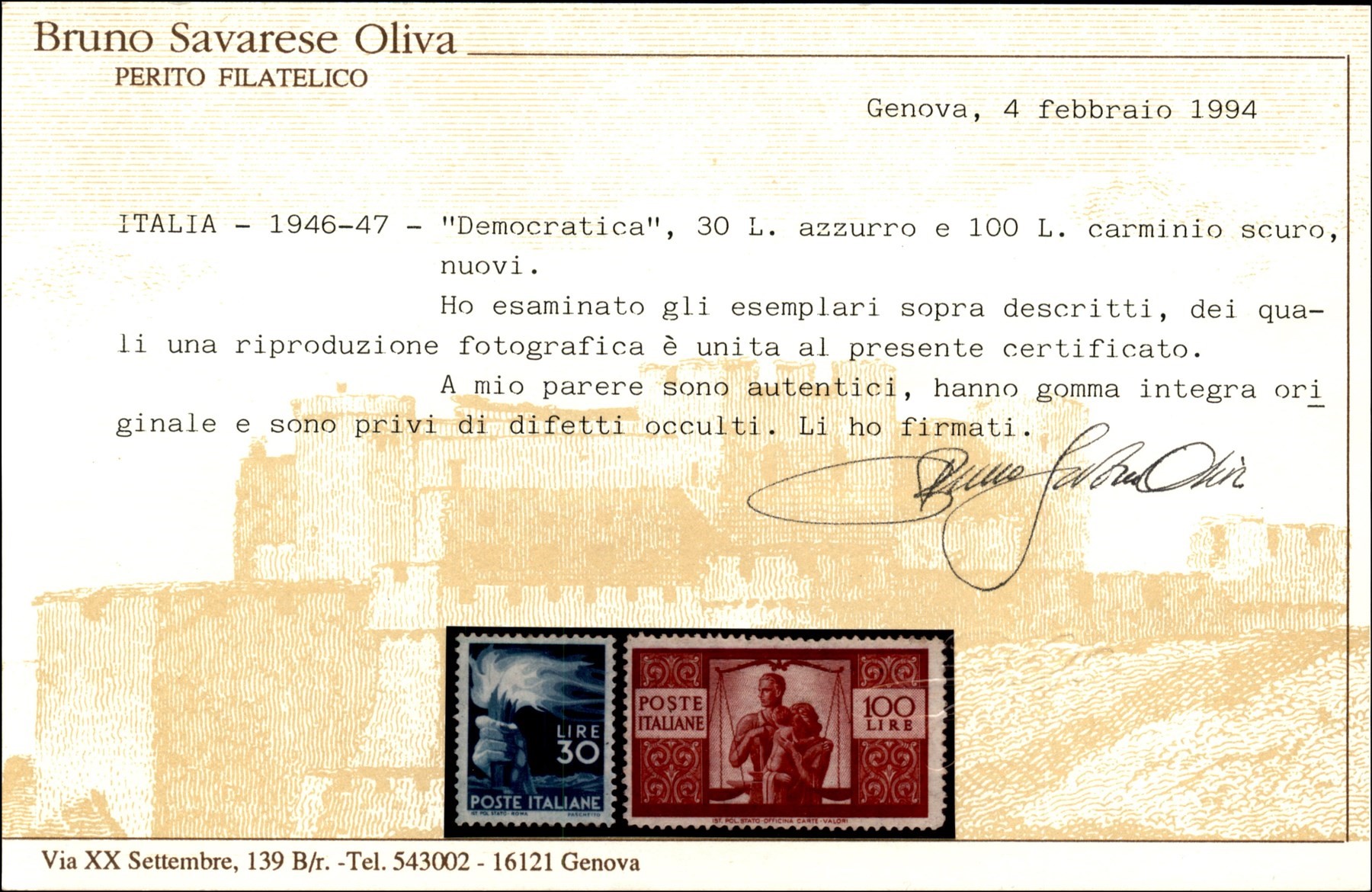 1946/1947 - Democratica (543/565) - serie completa gomma integra - cert. Oliva per il 30 e 100 lire (Image 1)