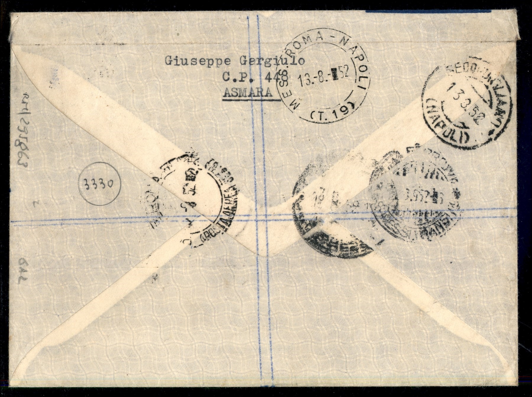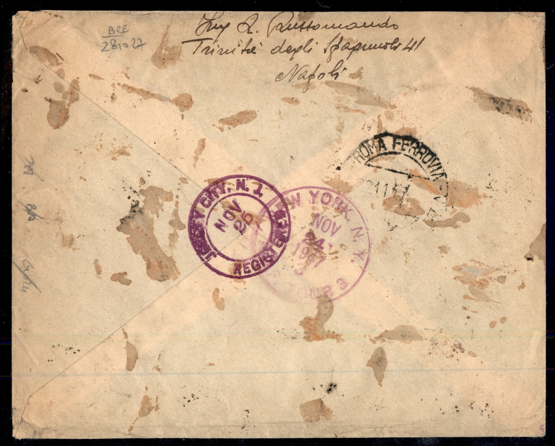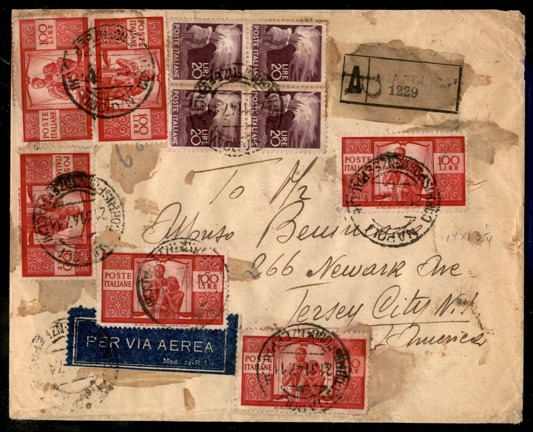Sei esemplari del 100 lire Democratica (565) + quartina del 20 lire (561) su assicurata da Napoli a Jersey City (USA) del 21.11.47 (Image 1)