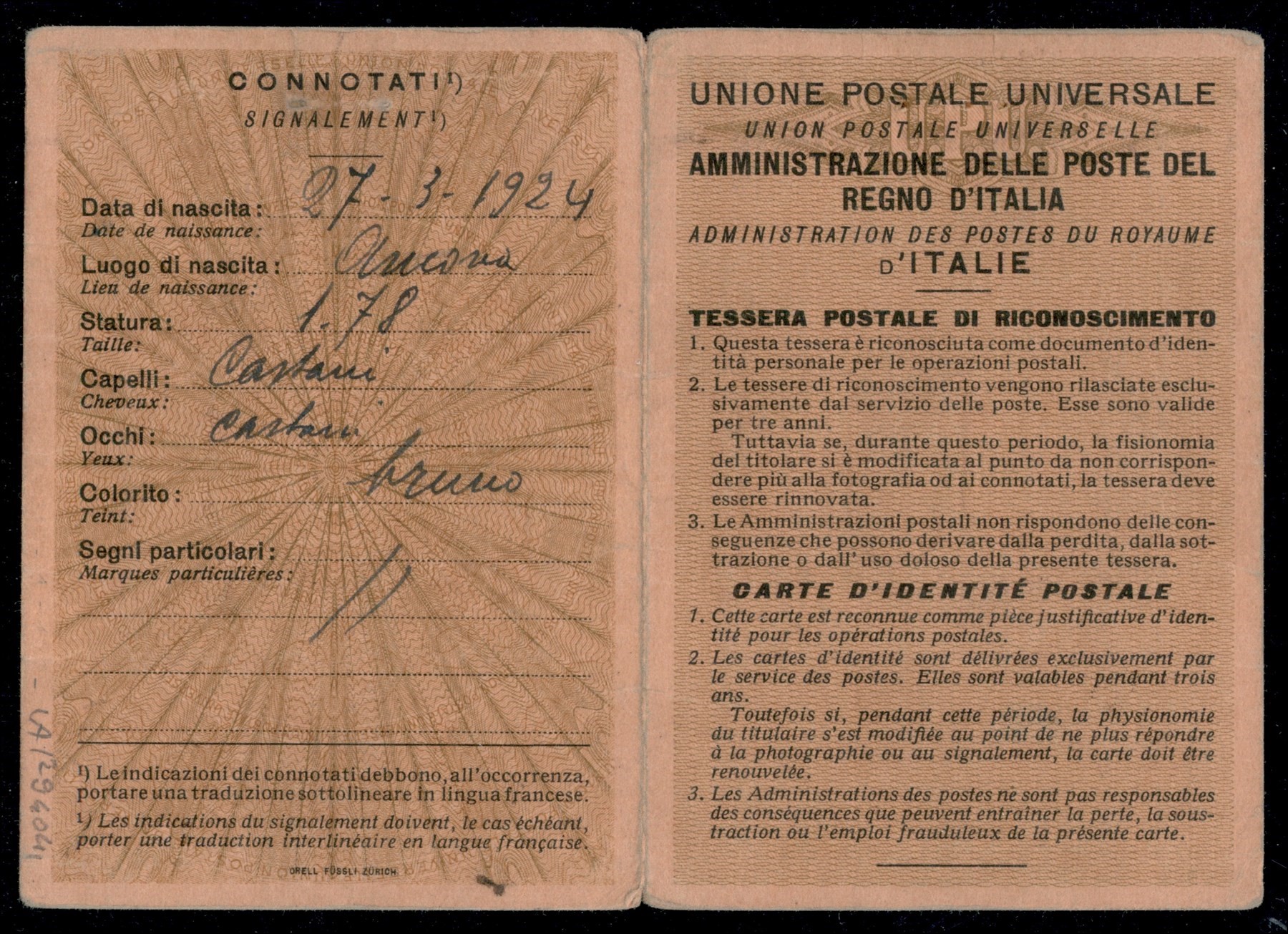 Democratica 100 lire (565) isolato su tessera postale di riconoscimento - Ancona 19.8.48 - ottimo stato (Image 1)