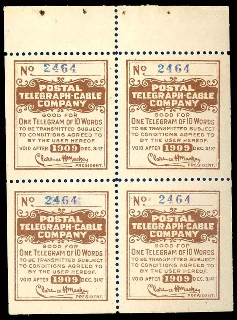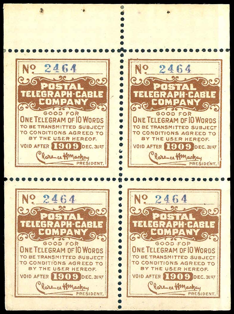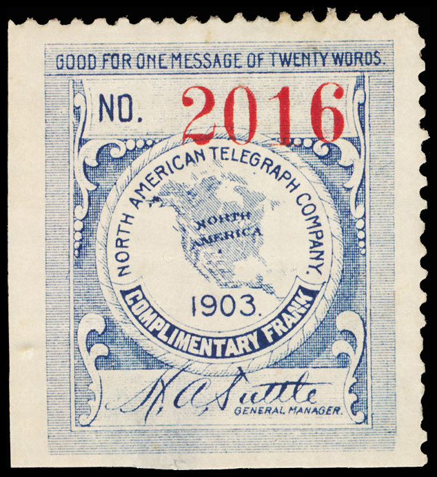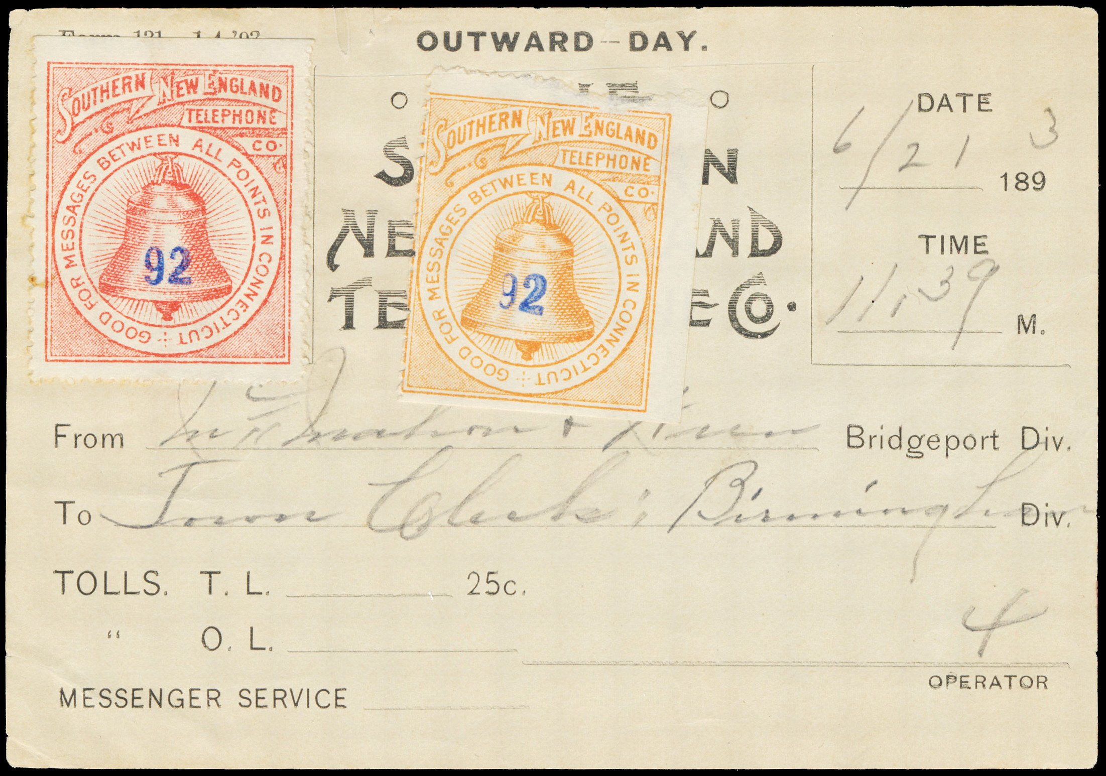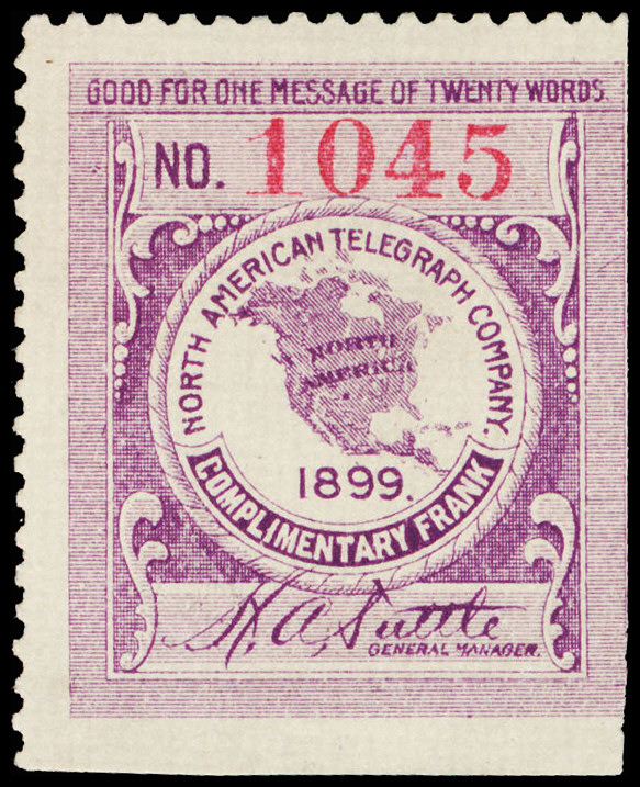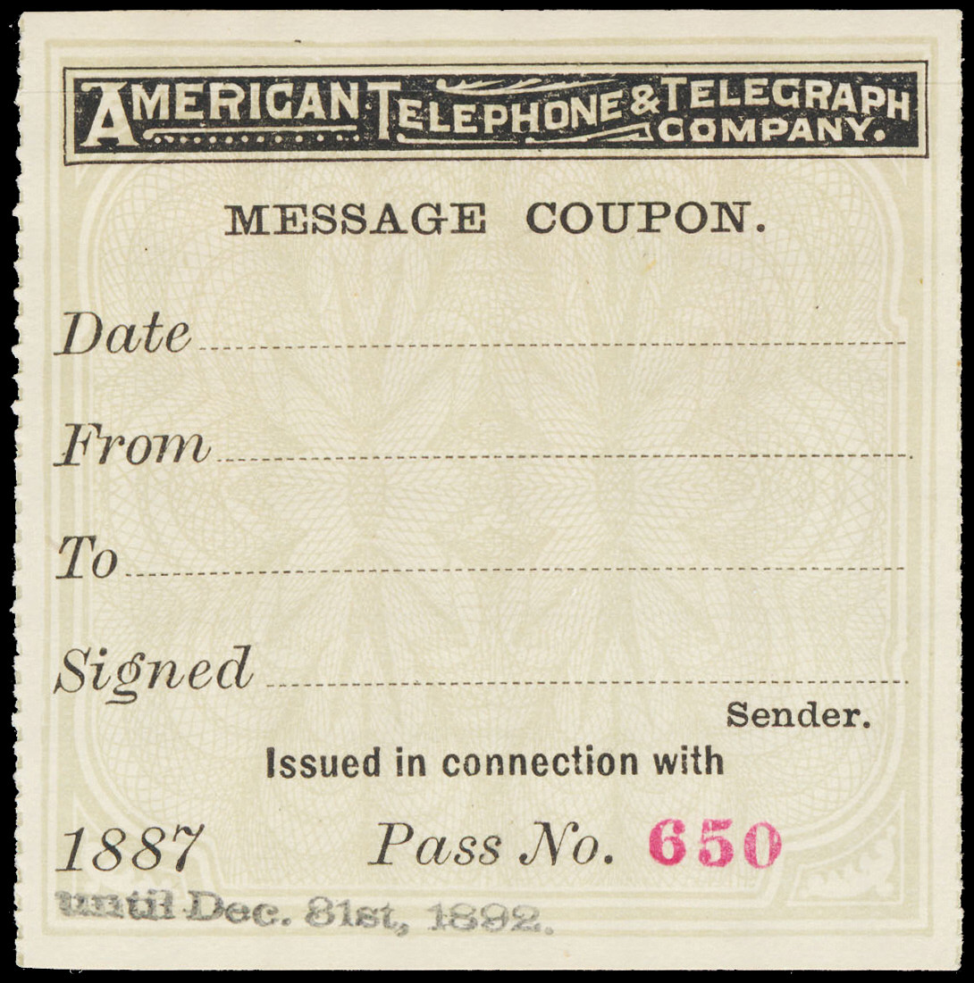 2218 og image(ATT1887) 1887 Message Coupon, American Telephone & Telegraph, unused, HR, VF-XF, very scarce.
