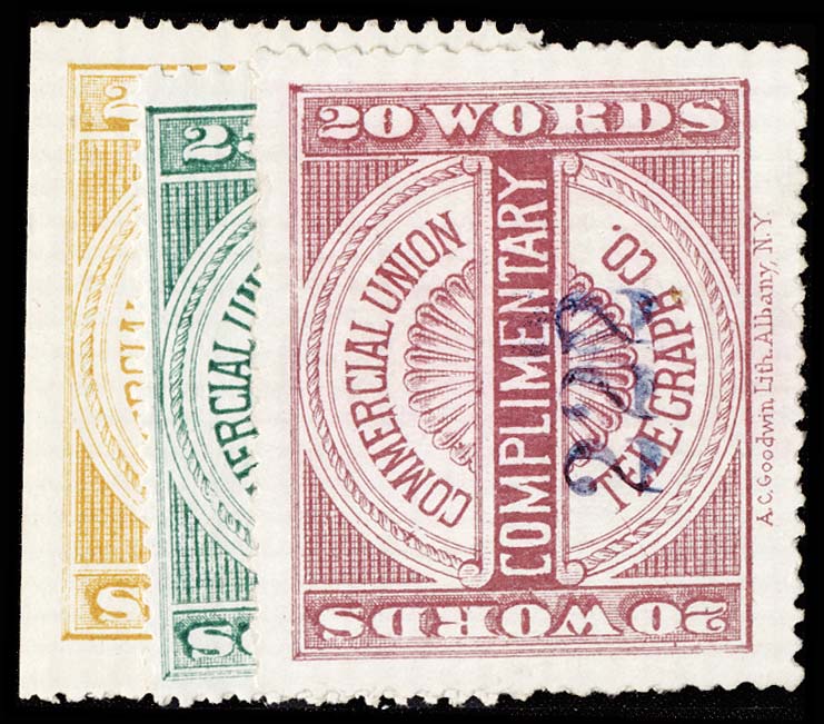 2220 og image(U13) Uncancelled with writing at L., "James Street Gen'l Agent O. Telegraph Co. Free", quite fresh and Very Fine, certainly quite scarce.