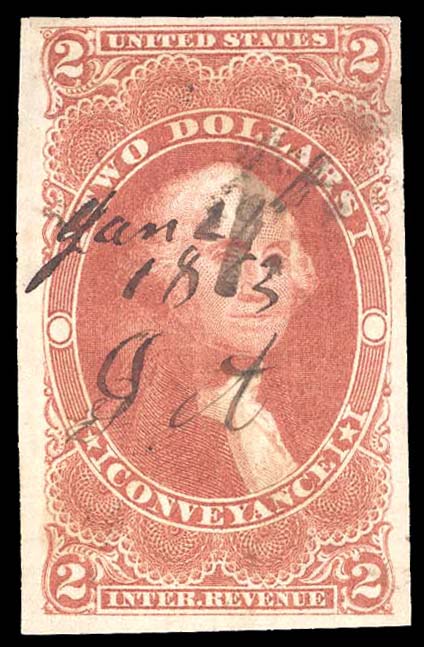 (R82a) MC, dark color, fresh and XF, large margins and a real nice looking stamp.