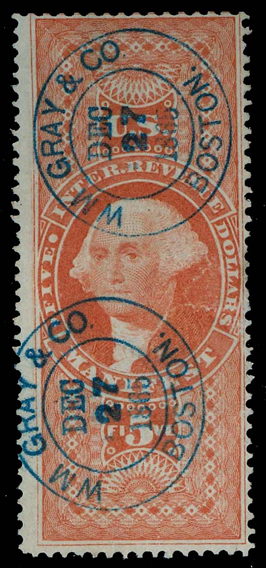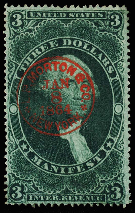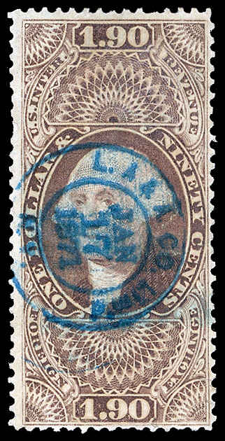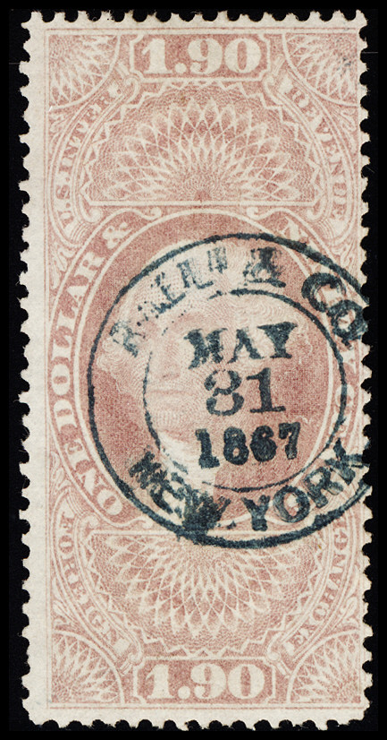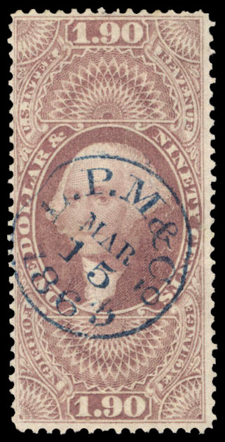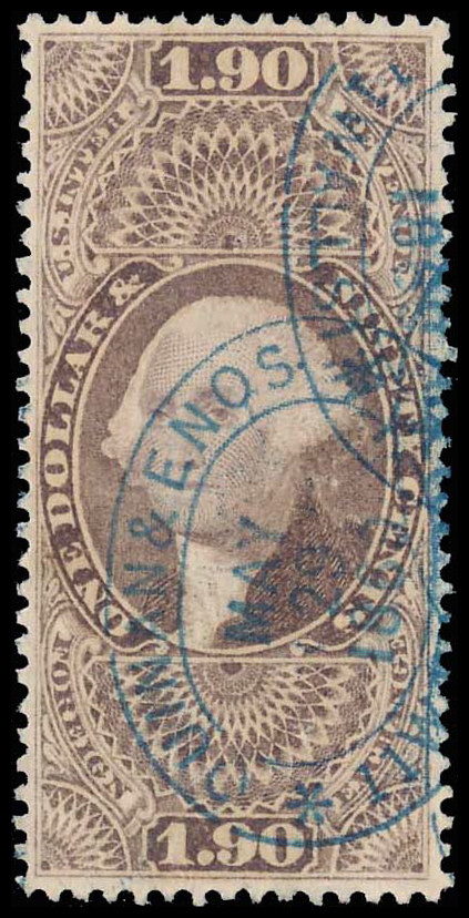 (R90c) Bl. SON HC, "Norfolk & New Brunswick Hosiery Comp.", pinhole, VG, a most unusual cancel and the only example we have ever seen.