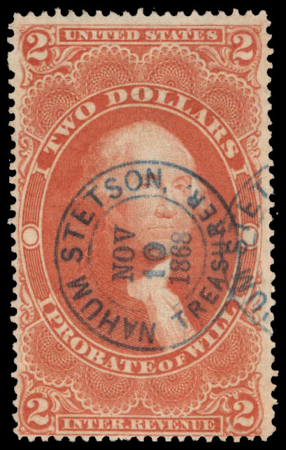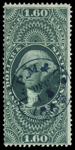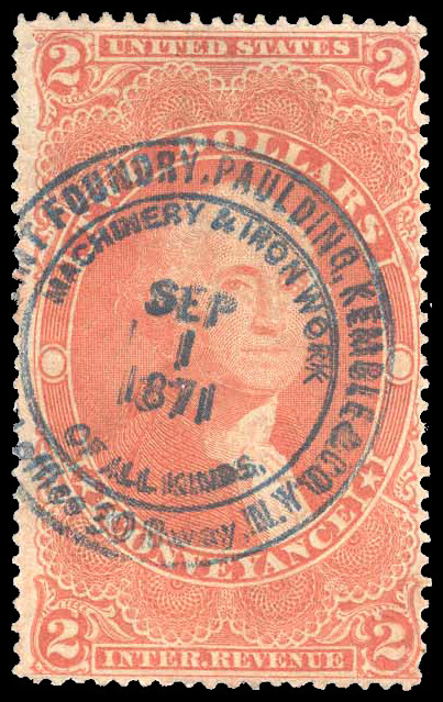(R81d) Bl. SON HC, "Machinery & Iron Works of All Kinds", dark color, F, great strike and very interesting subject cancel and the only example we have ever seen.