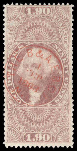 (R80c) Red SON HC, "The B. & A.E.B. Co.", short perfs, sharp color, fresh and F.