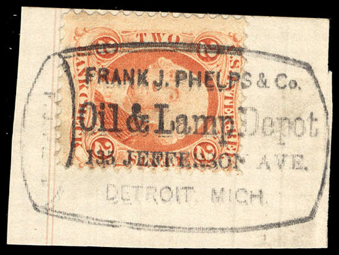 (R6c) SON HC tied on piece, "Oil & Lamp Depot", F-VF, very rare.