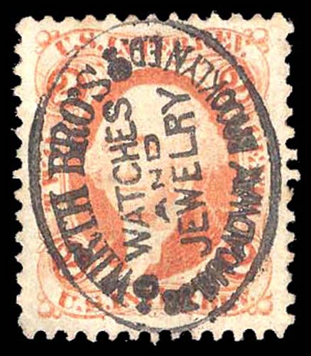 (R15c) SON HC, "Wirth Bro's Watches and Jewelry", dark color, VF-XF, choice stamp, a truly amazing strike of a most unusual cancel and the only example we have ever seen.