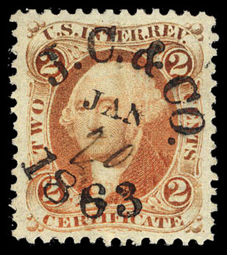 (R8c) SON HC, "J.C. & Co.", dark color, XF, choice stamp.