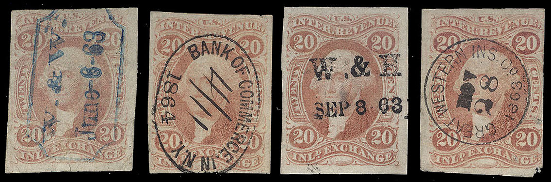 (R42a(4)) Group of Four different SON HC's, sm. faults, F-VF, some very nice cancels here.