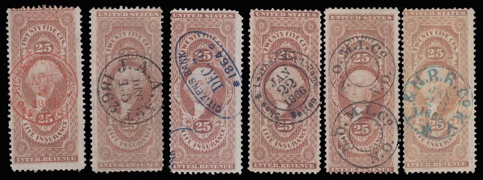 (R50c) Group of six different SON HC's, sm. faults, overall F-VF, there are some very nice cancels here, scarce group.