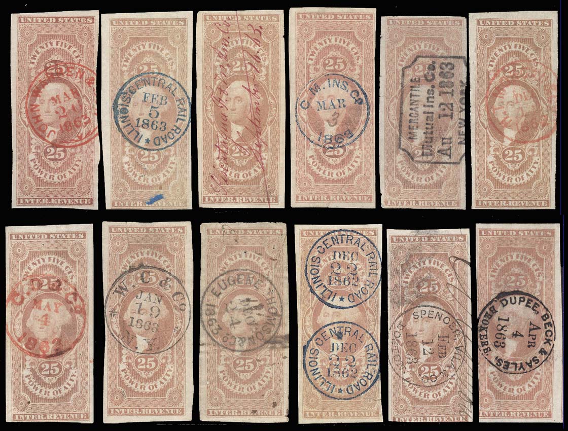 (R48a) Group of 12 different SON HC's, sm. faults, overall F-VF, there are some very nice cancels here.