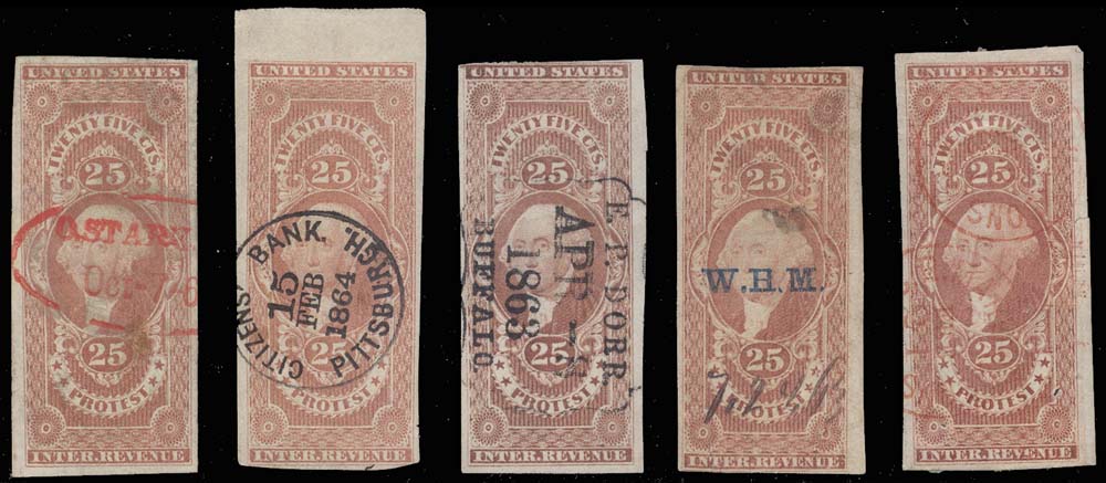 (R49a) Group of five different SON HC's, sm. faults, overall F-VF, there are some very nice cancels here, scarce group.