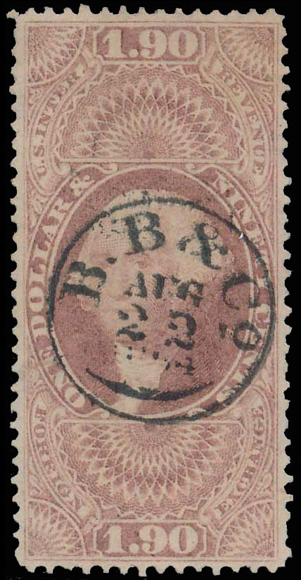 (R77c) SON HC, "B.B. & Co.", short perf, sharp color, VG-F, choice strike.
