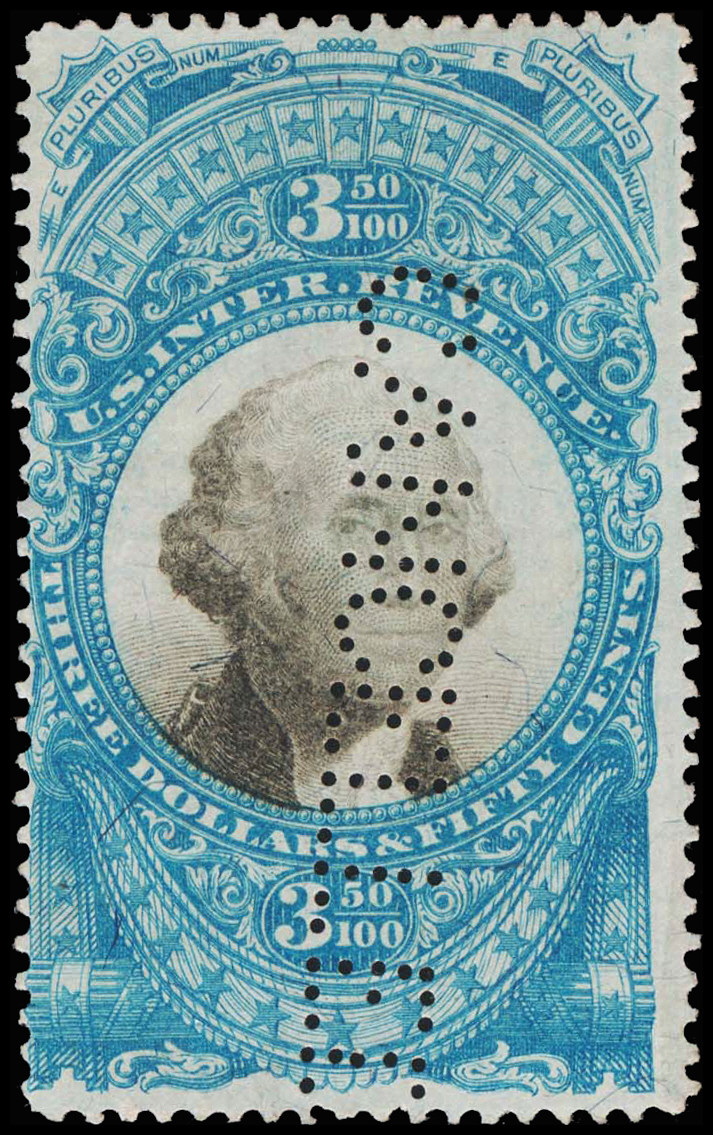 (R126) PI, dark color, VG-F, this is the only recorded example with perforated initials.