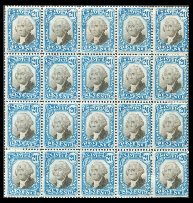 3469 og[] image(R111) BL/20, HR, middle six stamps are NH, sharp color, VG-F, a very large mint multiple.