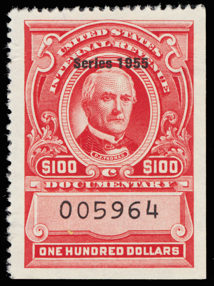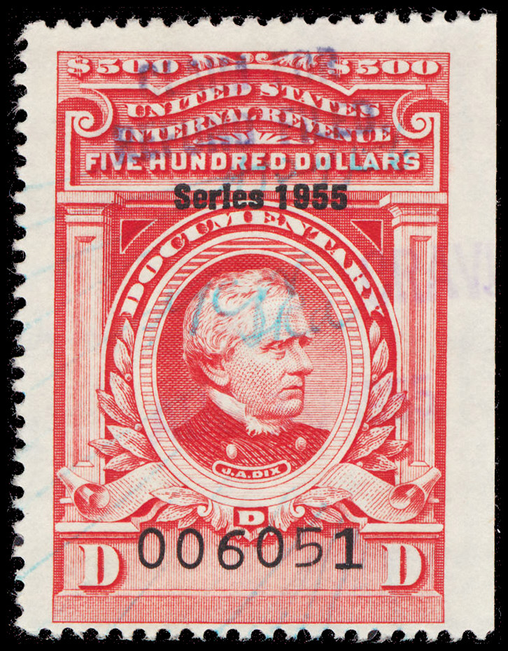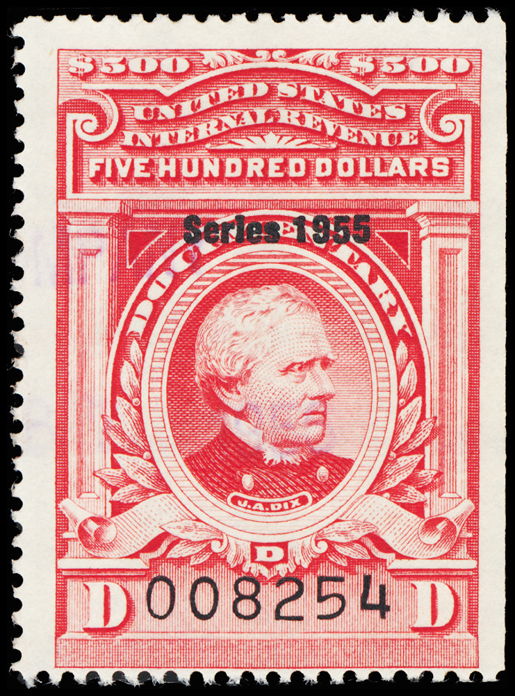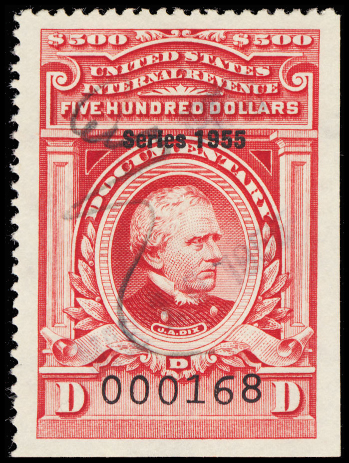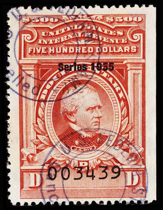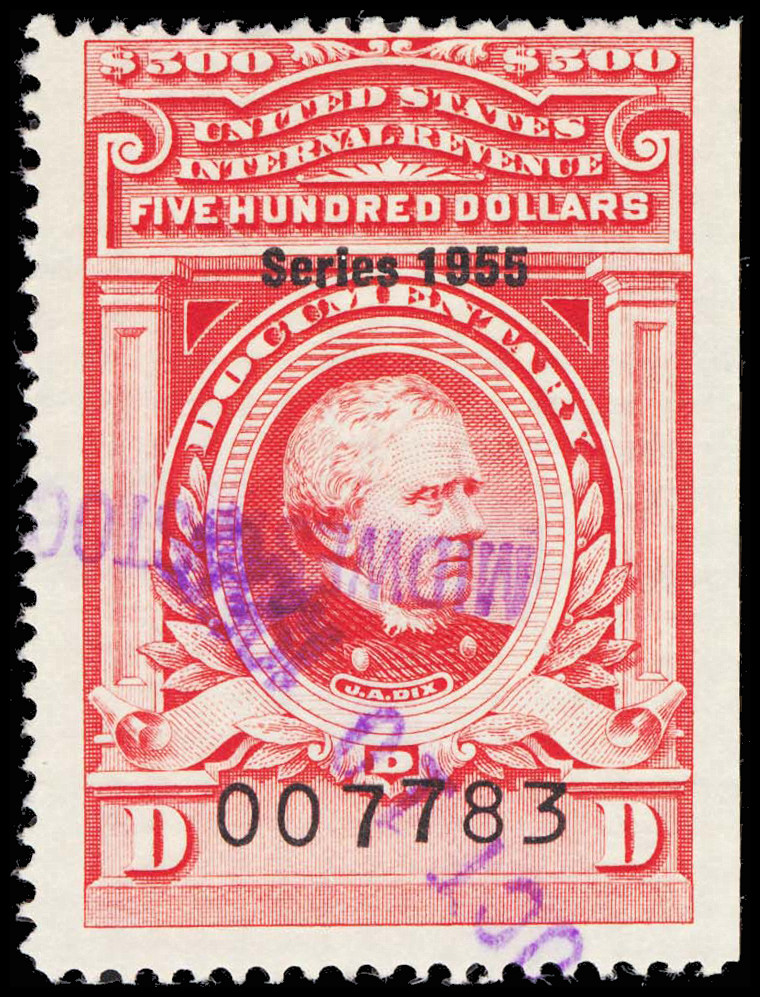(R686) HC, MC, fresh and deep dark color, VF example of this exceedingly rare stamp with only eight uncut examples recorded.