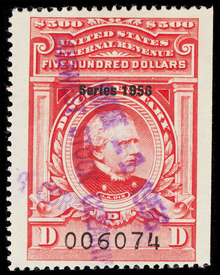 (R696) MC, dark color, fresh and VG, a scarce stamp with only 22 uncut examples recorded.