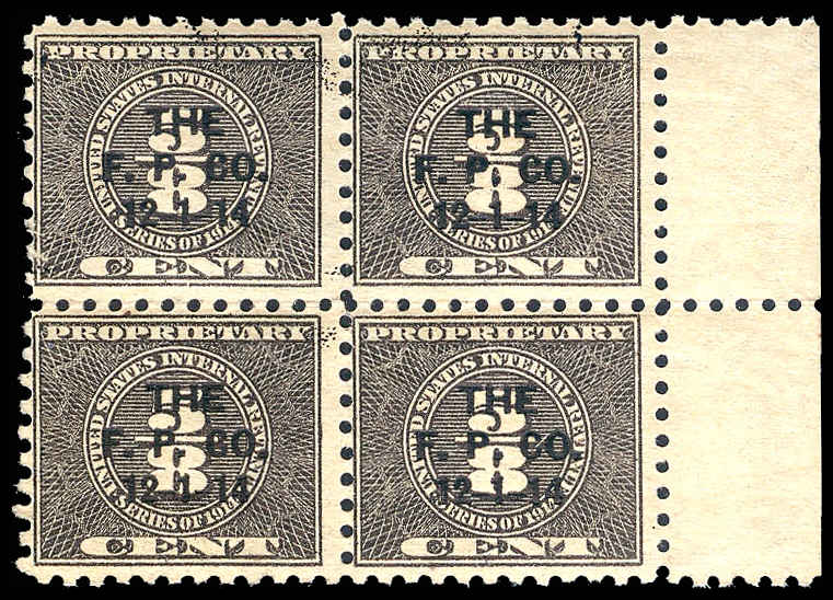 4027 O[] image(RB48) R. margin BLK/4, PC, "The F. P. Co.", Fette Perfume Co., F, a very scarce multiple.