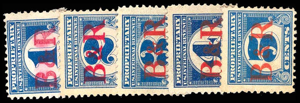 4028 O image(RB65-69) Set of Five, "B & R", Red PC, sm. faults, F-VF.